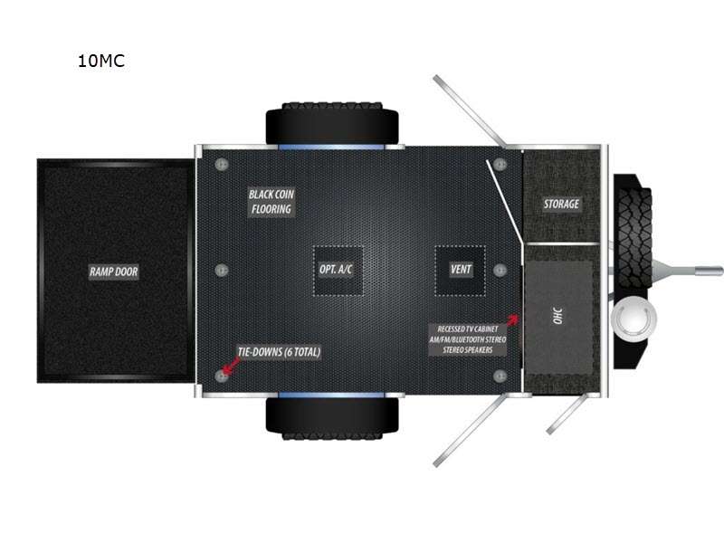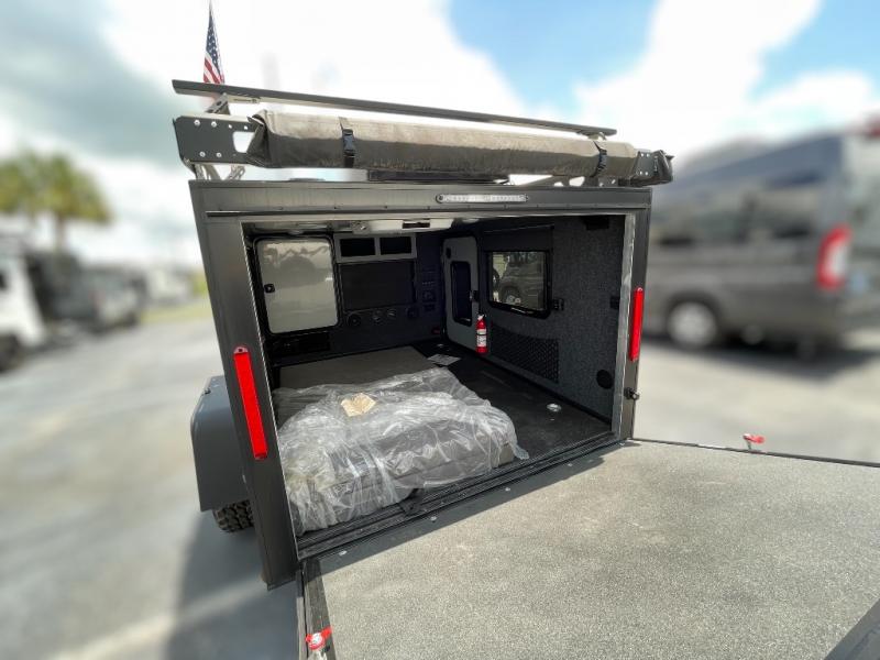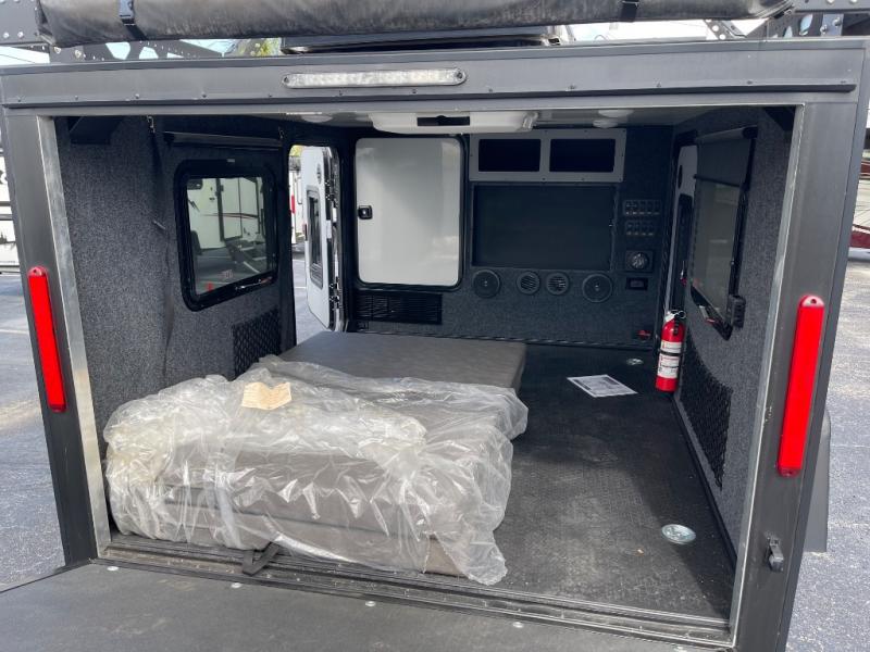 The 10MC is the smallest of the Encore ROG trailers, but don't let that fool you. This compact micro-lite is perfect for those quick getaways where you just want to load and go. The rear ramp door makes it easy to load your hiking or camping gear so you can hitch up and go. After a day of adventuring you can drift off to sleep on the 60" x 80" x 4" bi-fold mattress inside. There is 10 cu. ft. in an exterior storage compartment and interior aluminum cabinetry with accent lights for your items. You can also add an optional roof rack so you can easily take along a couple of kayaks on your next excursion. This little cutie easily fits in a standard sized garage!