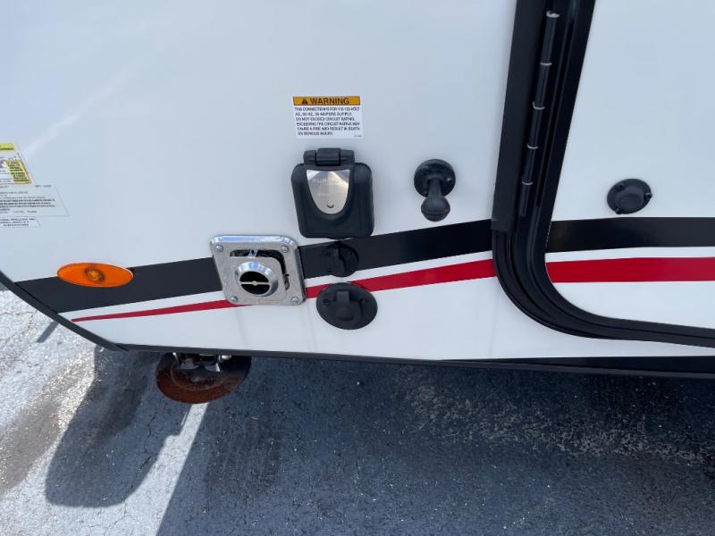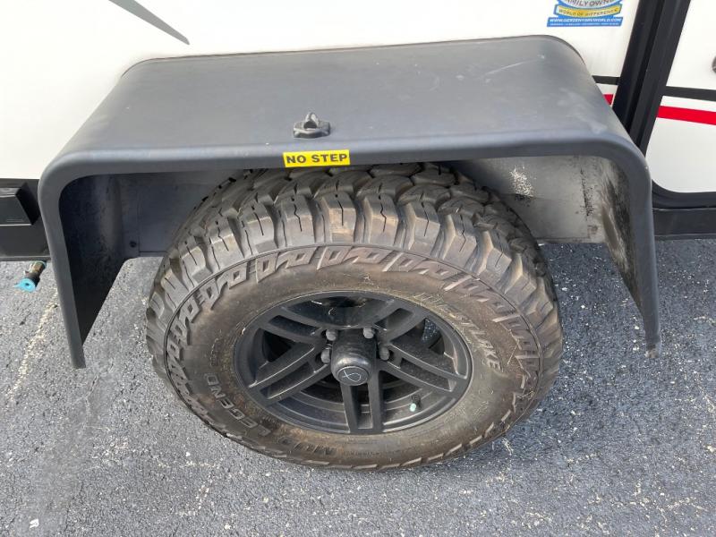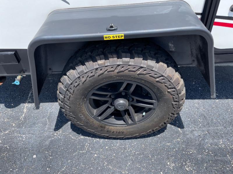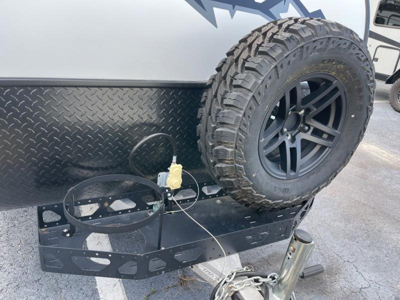 The Encore RV ROG travel trailer has a smaller size and a rugged design so that you can tow with ease and visit remote spots that other campers can't. While you go off-grid, you'll stay comfortable with the amenities provided by the ROG. The exterior is outfitted with aluminum wheels, four stabilizer jacks, under-frame amber accent lights, an all-aluminum tube construction, and an all-aluminum chassis. There are a couple of options that will entice you, like the optional roof rack system with 74" crossbars to help you transport some bikes or kayaks or the optional 11,000 BTU roof mount A/C. Included as standard are USB charging ports that will help you keep your electronics full of power, and the vapor bond insulation will stop the cold or heat from disrupting your comfort level on the interior.
