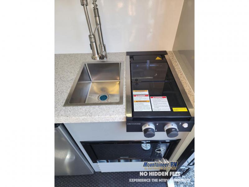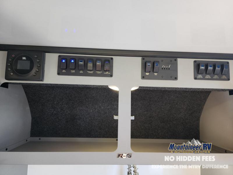 The Encore RV ROG travel trailer and toy hauler expandable has a smaller size and a rugged design so that you can tow with ease and visit remote spots that other campers can't. While you go off-grid, you'll stay comfortable with the amenities provided by the ROG. These lightweight models are 100% wood free for added durability, along with an all-aluminum frame, a one-piece fiberglass roof, and tri-bond construction. You will love the premium components throughout, such a JBL, Azdel, and Dexter brands, and each model also includes solid surface countertops with no wood substrate.