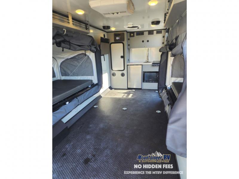 Head out to your favorite place to camp and explore with this ROG toy hauler model featuring two tip-out bunks, one on either side. You can sleep comfortably at night, and there is a table that can be set up and attached to the inside of the expanding tent bed for dining. Up front, you will find a two burner LP stove with cast iron grates and glass top, an optional microwave oven, 3.3 cu. ft. refrigerator/freezer and a stainless steel sink with faucet for cleaning up. There is a large storage cabinet for clothes, plus overhead cabinets for your gear and things. When it's time to load and unload the toys, drop the rear ramp door for easy access. Choose the optional Survival Series Package for even more rugged features!