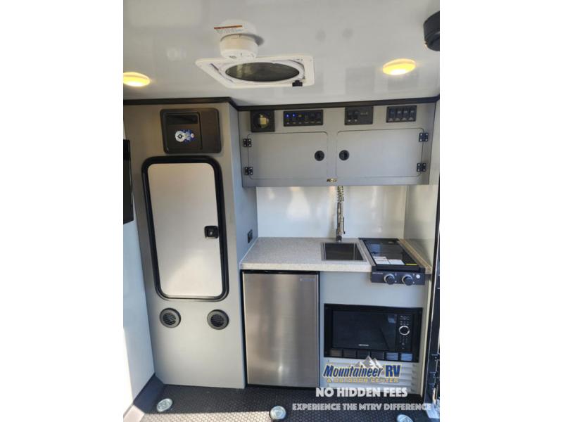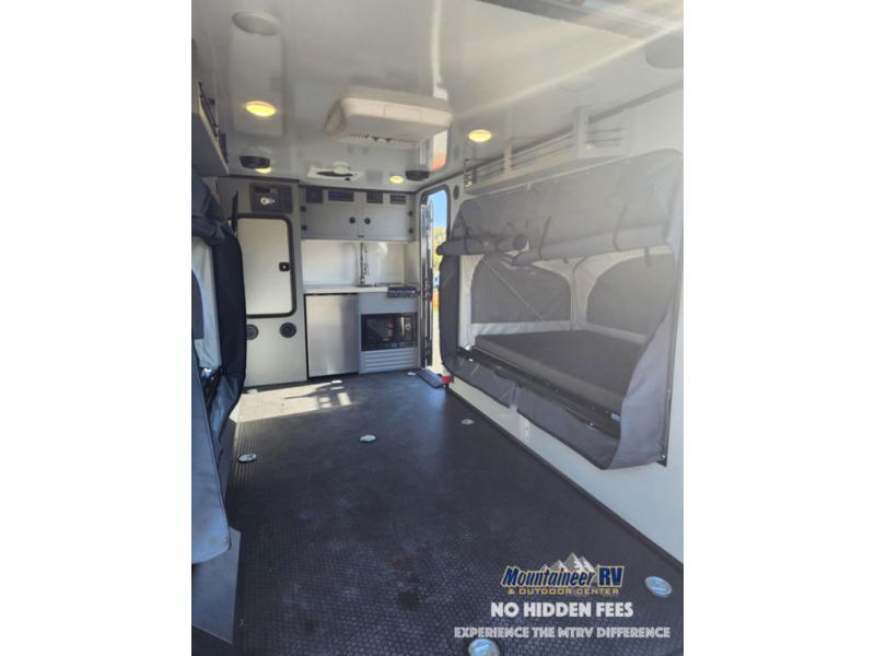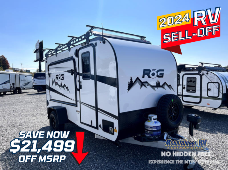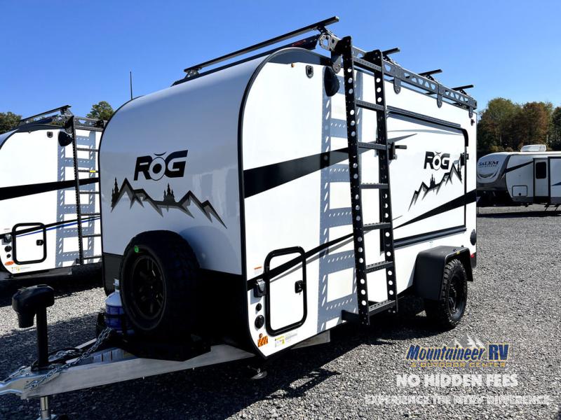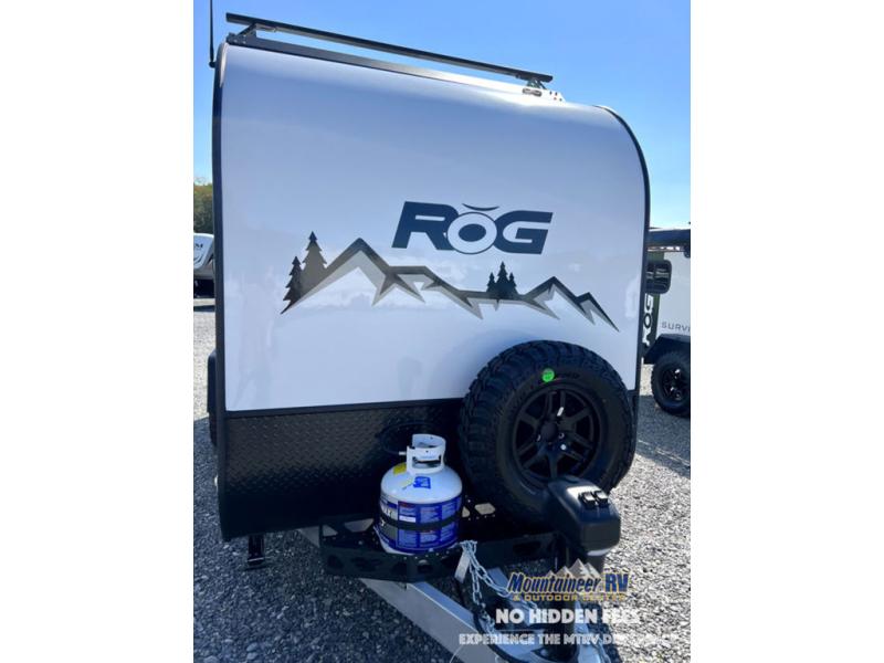 Head out to your favorite place to camp and explore with this ROG toy hauler model featuring two tip-out bunks, one on either side. You can sleep comfortably at night, and there is a table that can be set up and attached to the inside of the expanding tent bed for dining. Up front, you will find a two burner LP stove with cast iron grates and glass top, an optional microwave oven, 3.3 cu. ft. refrigerator/freezer and a stainless steel sink with faucet for cleaning up. There is a large storage cabinet for clothes, plus overhead cabinets for your gear and things. When it's time to load and unload the toys, drop the rear ramp door for easy access. Choose the optional Survival Series Package for even more rugged features!