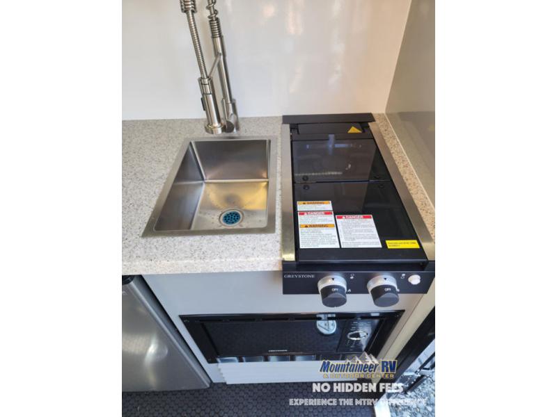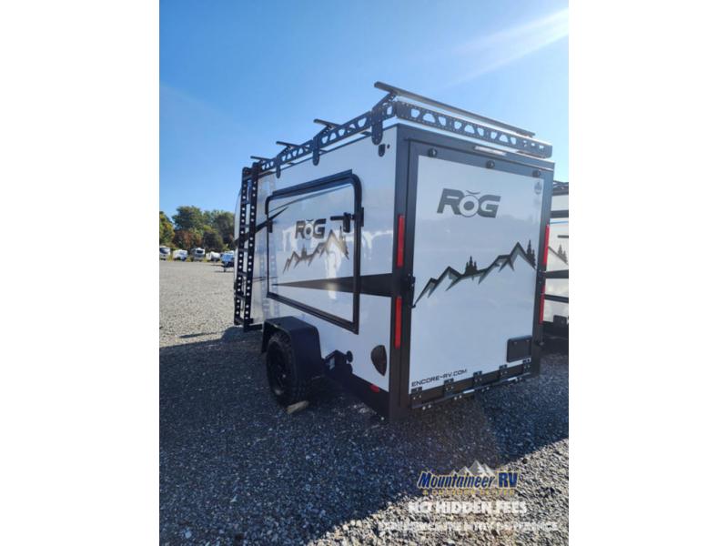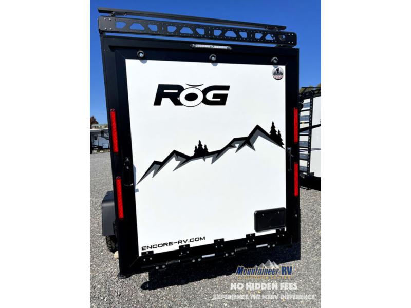 The Encore RV ROG travel trailer and toy hauler expandable has a smaller size and a rugged design so that you can tow with ease and visit remote spots that other campers can't. While you go off-grid, you'll stay comfortable with the amenities provided by the ROG. These lightweight models are 100% wood free for added durability, along with an all-aluminum frame, a one-piece fiberglass roof, and tri-bond construction. You will love the premium components throughout, such a JBL, Azdel, and Dexter brands, and each model also includes solid surface countertops with no wood substrate.