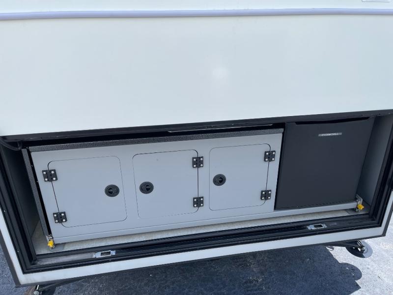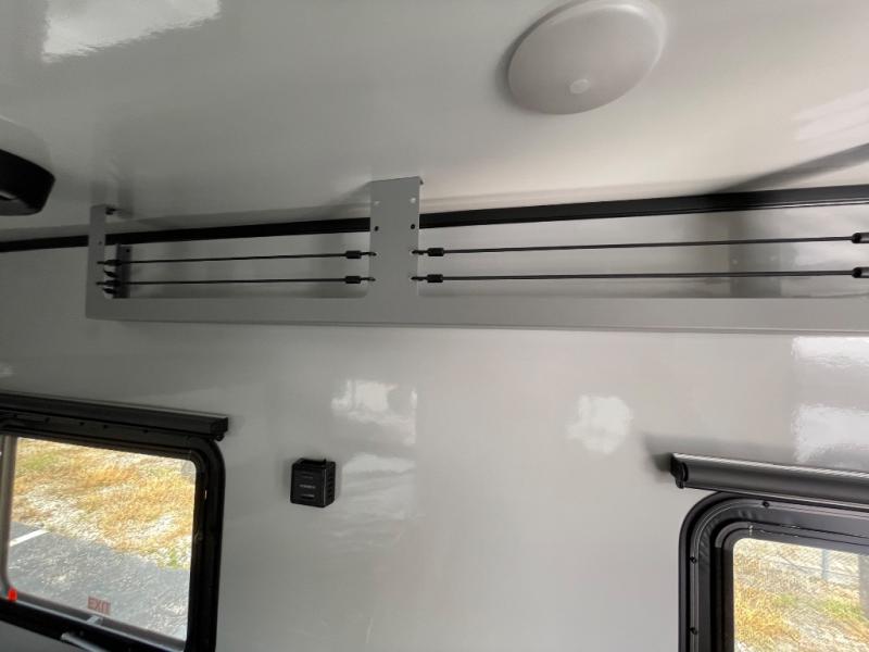 The Encore RV ROG travel trailer has a smaller size and a rugged design so that you can tow with ease and visit remote spots that other campers can't. While you go off-grid, you'll stay comfortable with the amenities provided by the ROG. The exterior is outfitted with aluminum wheels, four stabilizer jacks, under-frame amber accent lights, an all-aluminum tube construction, and an all-aluminum chassis. There are a couple of options that will entice you, like the optional roof rack system with 74" crossbars to help you transport some bikes or kayaks or the optional 11,000 BTU roof mount A/C. Included as standard are USB charging ports that will help you keep your electronics full of power, and the vapor bond insulation will stop the cold or heat from disrupting your comfort level on the interior.