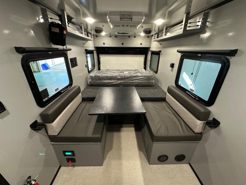 The Encore RV ROG travel trailer has a smaller size and a rugged design so that you can tow with ease and visit remote spots that other campers can't. While you go off-grid, you'll stay comfortable with the amenities provided by the ROG. The exterior is outfitted with aluminum wheels, four stabilizer jacks, under-frame amber accent lights, an all-aluminum tube construction, and an all-aluminum chassis. There are a couple of options that will entice you, like the optional roof rack system with 74" crossbars to help you transport some bikes or kayaks or the optional 11,000 BTU roof mount A/C. Included as standard are USB charging ports that will help you keep your electronics full of power, and the vapor bond insulation will stop the cold or heat from disrupting your comfort level on the interior.