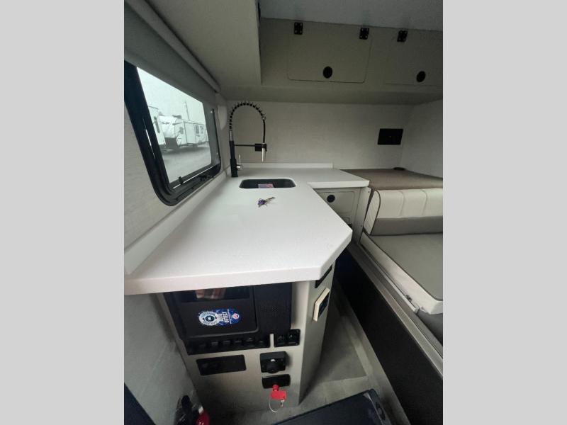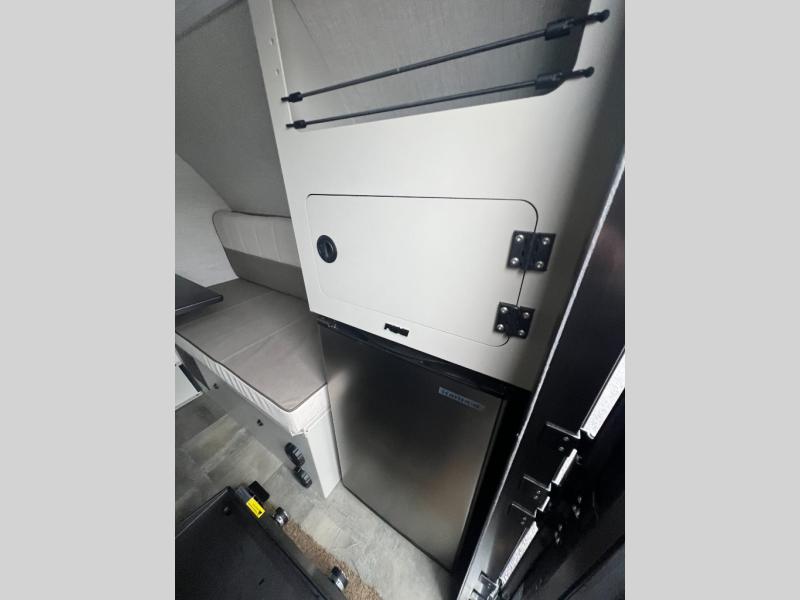 Expand your horizons with one of these Encore RV Venu teardrop trailers! They are 100% wood free with an all aluminum tube construction, an aluminum chassis, aluminum wheels, and a hi-gloss fiberglass one-piece roof. The Tweed interior walls come with Azdel and the one-piece Luxe vinyl flooring is not only durable, but also easy to clean. The exterior scare lights help to deter unwanted visitors. A few more safety features include a breakaway battery kit, safety chains, electric brake axles, and a full-size spare tire and mount just in case. You will stay in place once you set up too thanks to the four stabilizer jacks. Check one out today!
