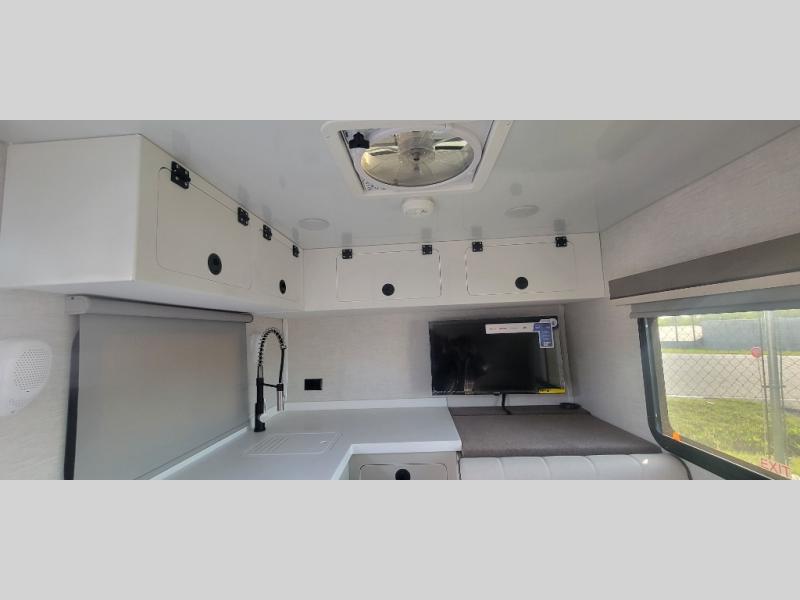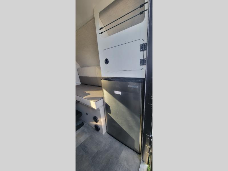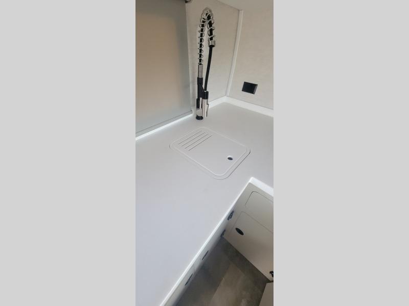 Expand your horizons with one of these Encore RV Venu teardrop trailers! They are 100% wood free with an all aluminum tube construction, an aluminum chassis, aluminum wheels, and a hi-gloss fiberglass one-piece roof. The Tweed interior walls come with Azdel and the one-piece Luxe vinyl flooring is not only durable, but also easy to clean. The exterior scare lights help to deter unwanted visitors. A few more safety features include a breakaway battery kit, safety chains, electric brake axles, and a full-size spare tire and mount just in case. You will stay in place once you set up too thanks to the four stabilizer jacks. Check one out today!