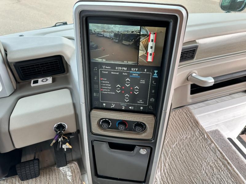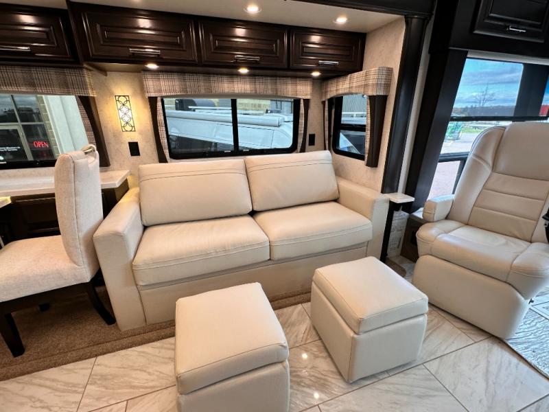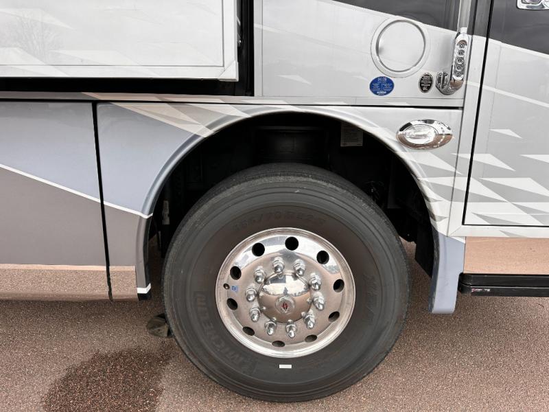With any Anthem Class A diesel motorhome by Entegra Coach, setting up camp has never been easier with the 15-inch digital dash displaying an integrated 360-degree surround view system with fourteen smart radar sensors and six HD cameras plus the Valid air leveling system. Each roof is constructed with arched aluminum trusses filled with batt insulation and reflective Flexfoil topped with plywood decking then one-piece fiberglass, exterior walls with Aluma-Tru welded tubular aluminum studs, insulated front and rear caps, and X-Bridge bracing welded into the chassis frame. The interior provides the Firefly multiplex system with 10-inch VegaTouch touchscreen for complete integration of the coach controls with remote monitoring and control from the available mobile app, a decorative ceiling feature with integrated accent lighting, powered solar day and blackout night shades, a central vacuum system, and Aire-Secure travel locks for all pocket doors to mention a few luxury, stylish and convenient features. So why not experience the best trip each and every time, choose an Anthem today!
