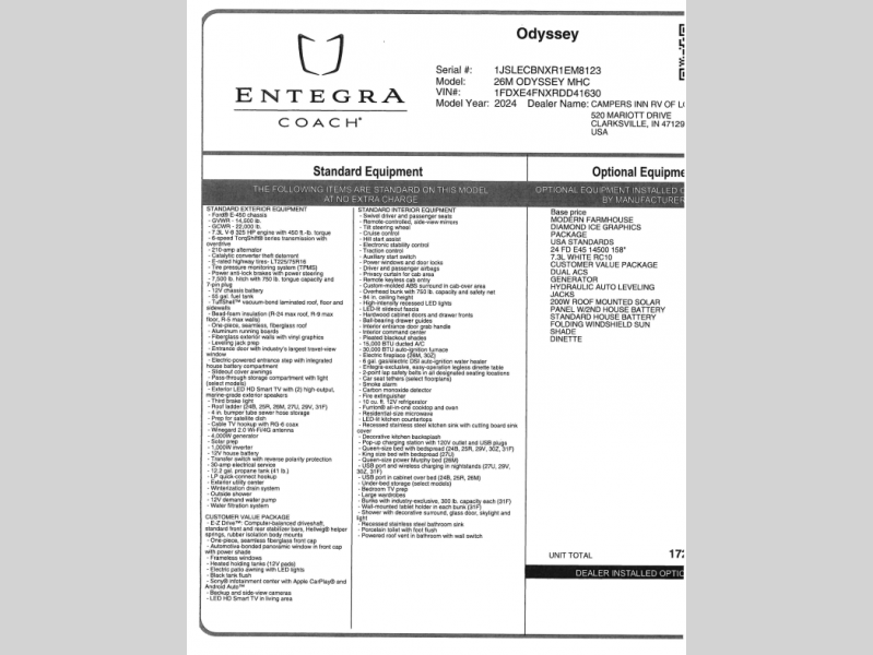 New 2024 Entegra Coach Odyssey 26M Motor Home Class C
