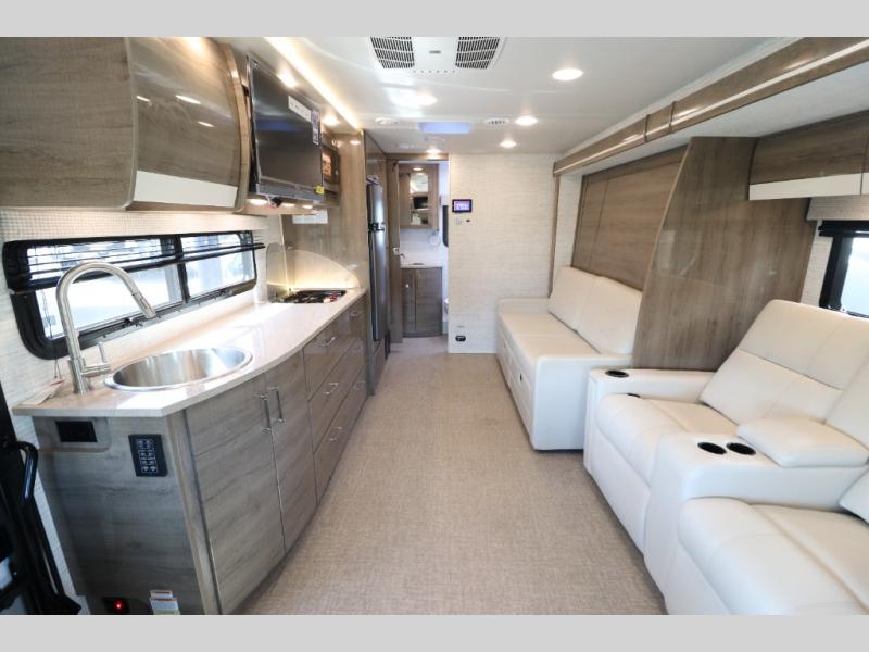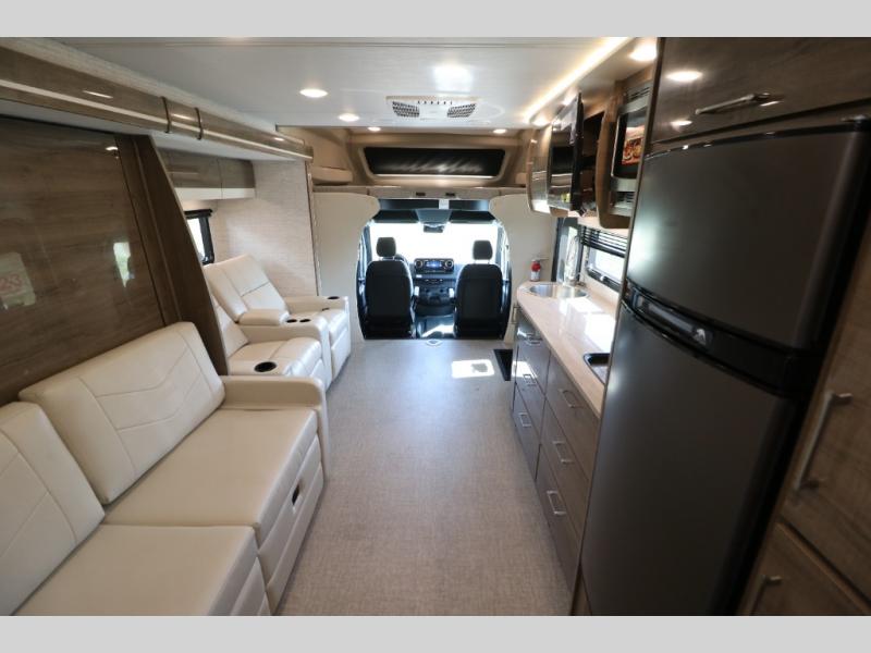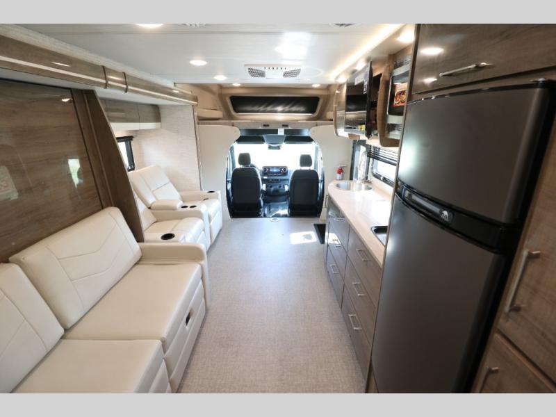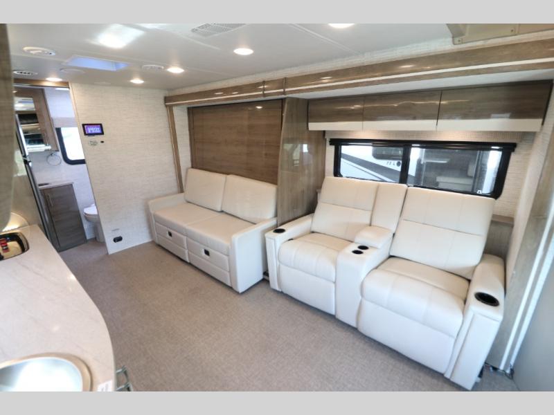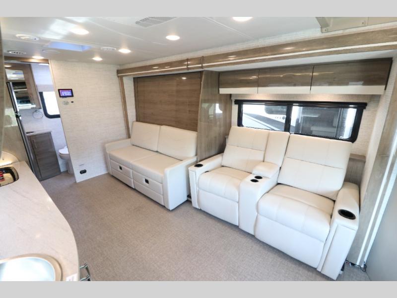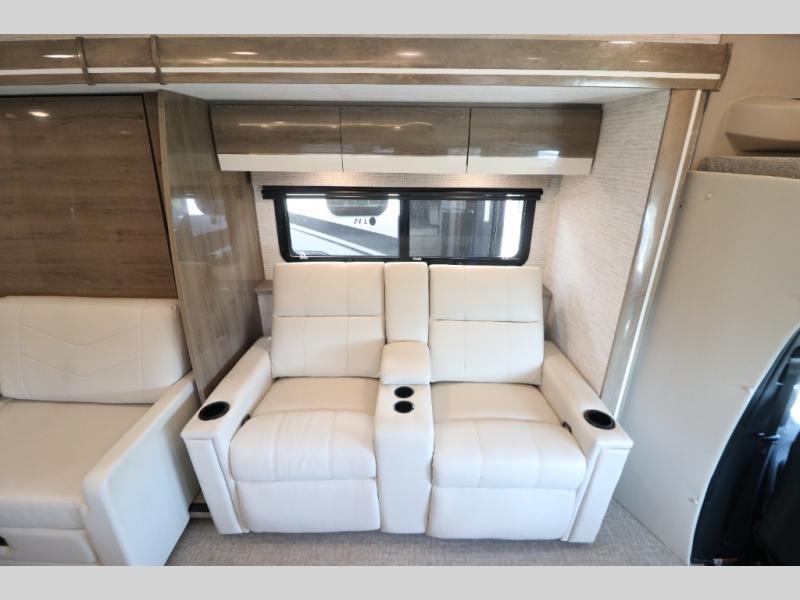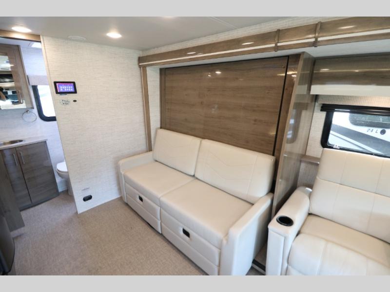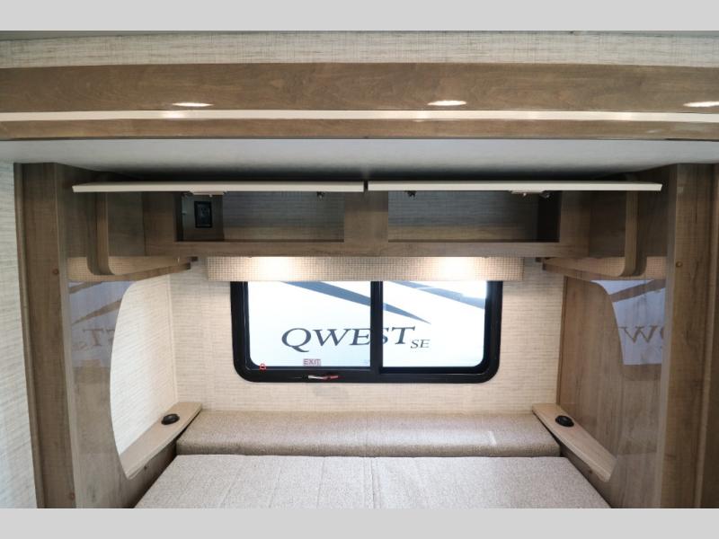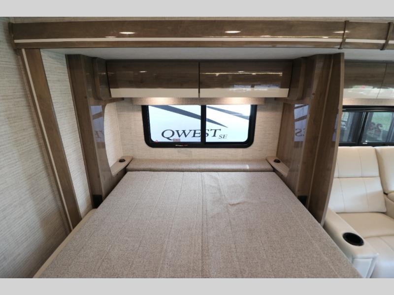 The Entegra Coach Qwest Class C diesel motorhome is built upon a premium Mercedes-Benz 3500 chassis with a 2L V4 twin turbo 211HP diesel engine to power your trips near and far. Each model is constructed with TuffShell vacuum-bond laminated sidewalls, premium Sikkens full-body paint, and bead-foam insulation so you can travel year around. Navigate like a pro with the 10.25 inch integrated Mercedes-Benz infotainment center with GPS, and you are sure to stay comfortable in the leatherette captain's seats. Some of the interior comforts you will enjoy with the Qwest are the Tecnoform high-gloss countertops, the large bedroom wardrobes, and the day/night roller shades. And we didn't even mention the convenient exterior features, like the Girard armless awning with LED lights, the outside shower, and the exterior utility center.
