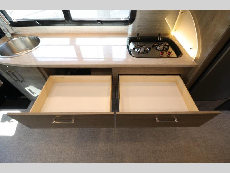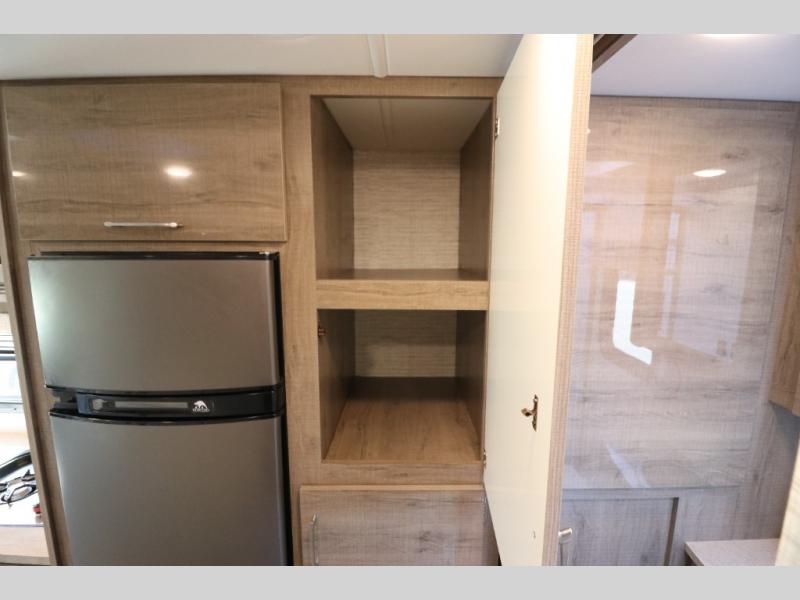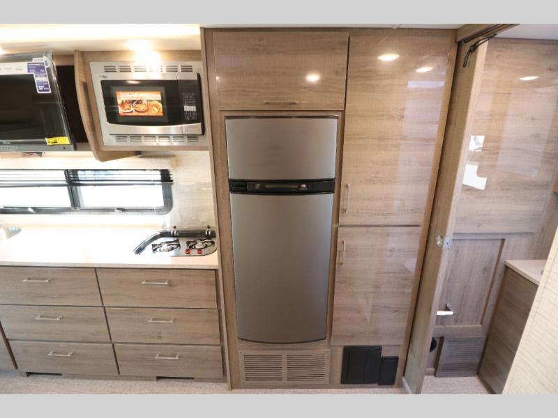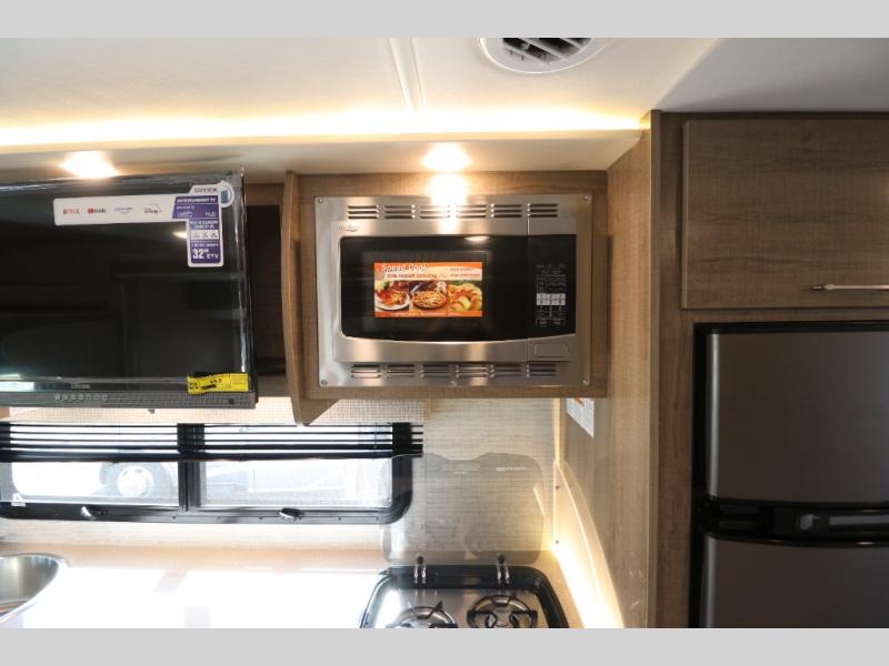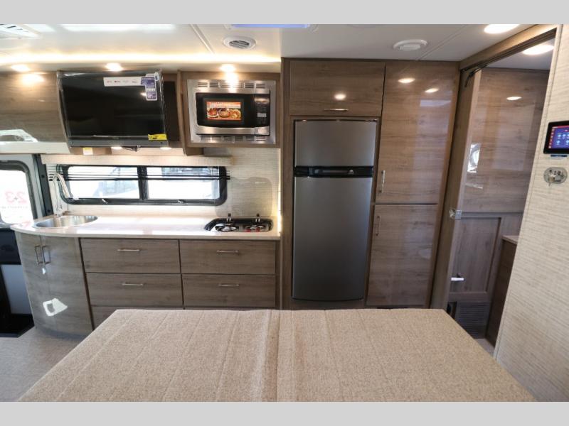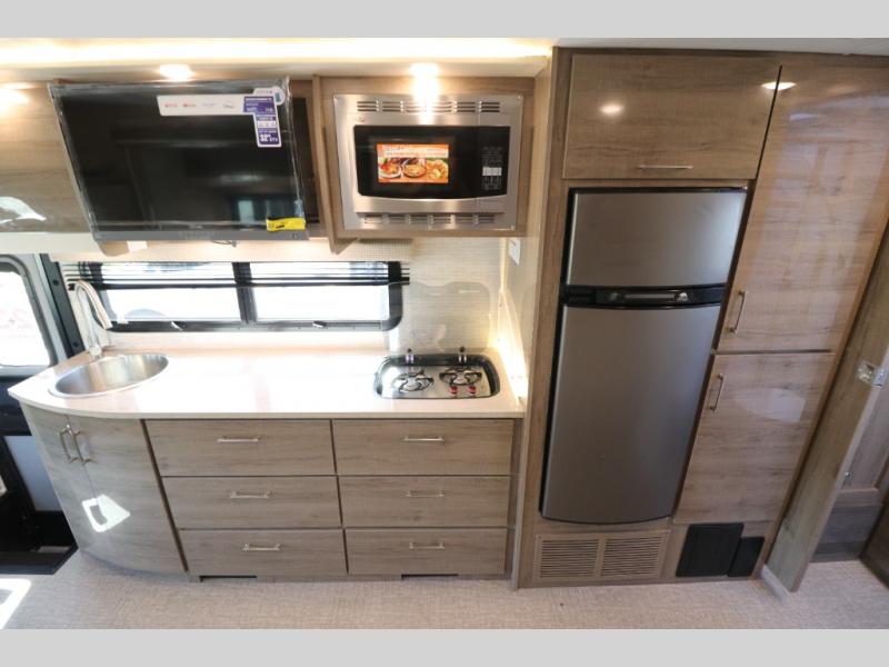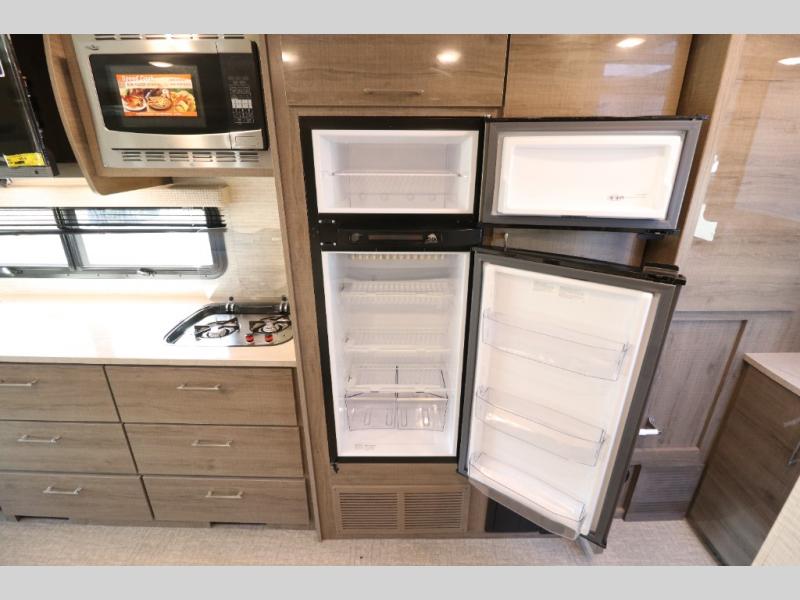 A full rear bath and a full-wall slide make this coach both spacious and convenient! You can prepare all your meals on the two burner cooktop, and dine together at the booth dinette. And you can choose the optional theater seating in place of the dinette for a more at-home feel. There is an LED TV in the living area to watch your favorite shows, and you'll find plenty of overhead compartments for your valuables. This model also features a cab-over bunk for the little ones, or you can choose the optional B+ front cap for extra storage space!
