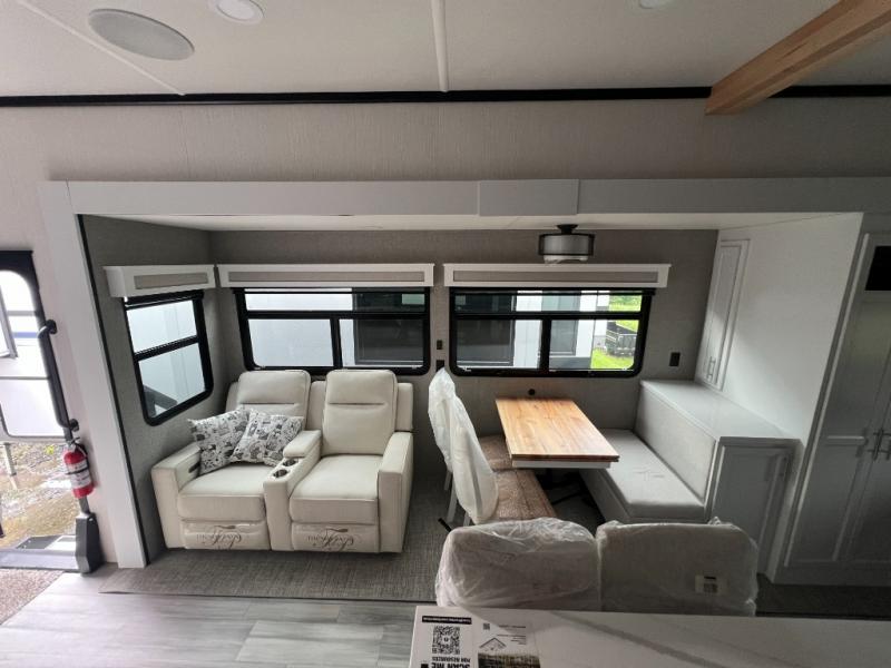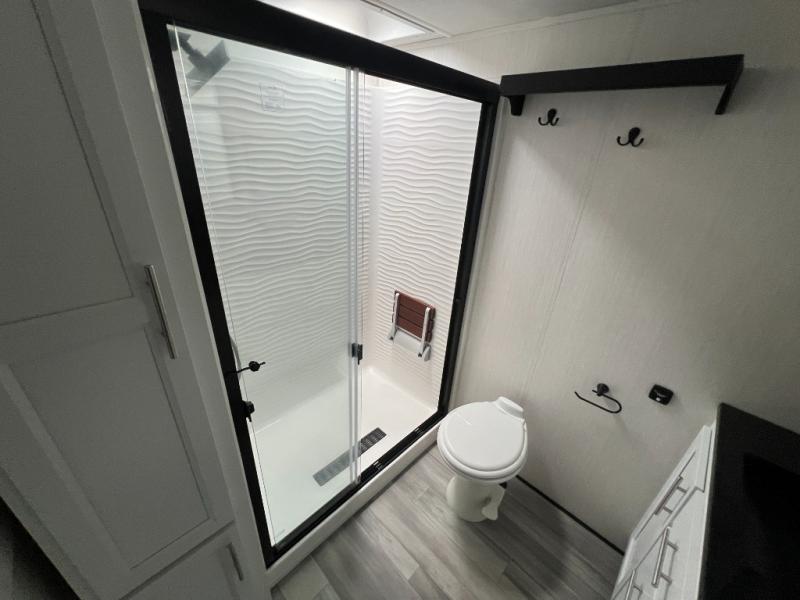 With any Cedar Creek fifth wheel by Forest River, you will find a quality-built RV with your comfort in mind! The all-aluminum super structure on 16" centers or less will provide a solid foundation to your fifth wheel, and the VIXENITE waterproof composite slide floors will hold up over years of use. Each model also includes black textured metal skirting, a TST tire pressure monitor system, and Cradlepoint Day 1 Wi-Fi connectivity so you can stay connected while you camp. A Lippert Gen 3 Leveling System makes setting up camp easier than ever, and the 200 watt solar panel means you can enjoy some off-grid capabilities. Head inside to find upgraded solid surface countertops, floating steps to the upper deck, USB ports, and updated backsplash that is modern and eye-catching. You will also enjoy new in-wall storage in the bedroom for books or personal belongings, a new V-Flo cordless vacuum for easy clean up, a redesigned shower with LED lighting and a fold-down bench, and many more luxuries!