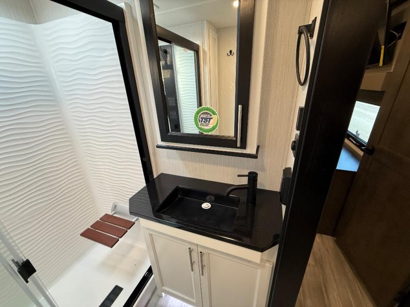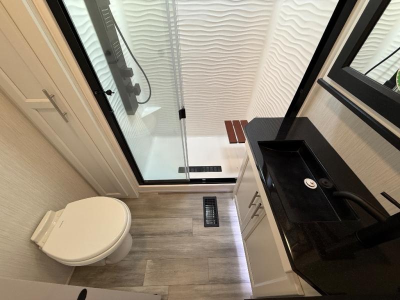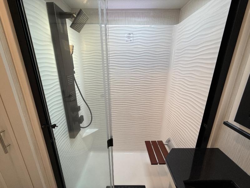 With any Cedar Creek fifth wheel by Forest River, you will find a quality-built RV with your comfort in mind! The all-aluminum super structure on 16" centers or less will provide a solid foundation to your fifth wheel, and the VIXENITE waterproof composite slide floors will hold up over years of use. Each model also includes black textured metal skirting, a TST tire pressure monitor system, and Cradlepoint Day 1 Wi-Fi connectivity so you can stay connected while you camp. A Lippert Gen 3 Leveling System makes setting up camp easier than ever, and the 200 watt solar panel means you can enjoy some off-grid capabilities. Head inside to find upgraded solid surface countertops, floating steps to the upper deck, USB ports, and updated backsplash that is modern and eye-catching. You will also enjoy new in-wall storage in the bedroom for books or personal belongings, a new V-Flo cordless vacuum for easy clean up, a redesigned shower with LED lighting and a fold-down bench, and many more luxuries!