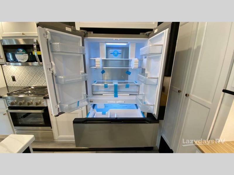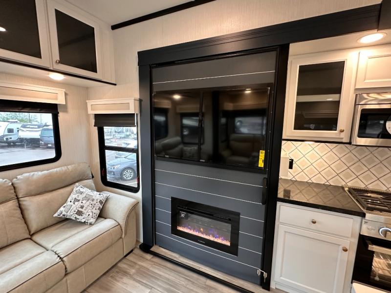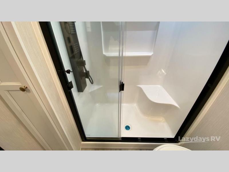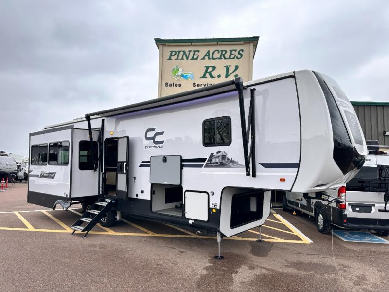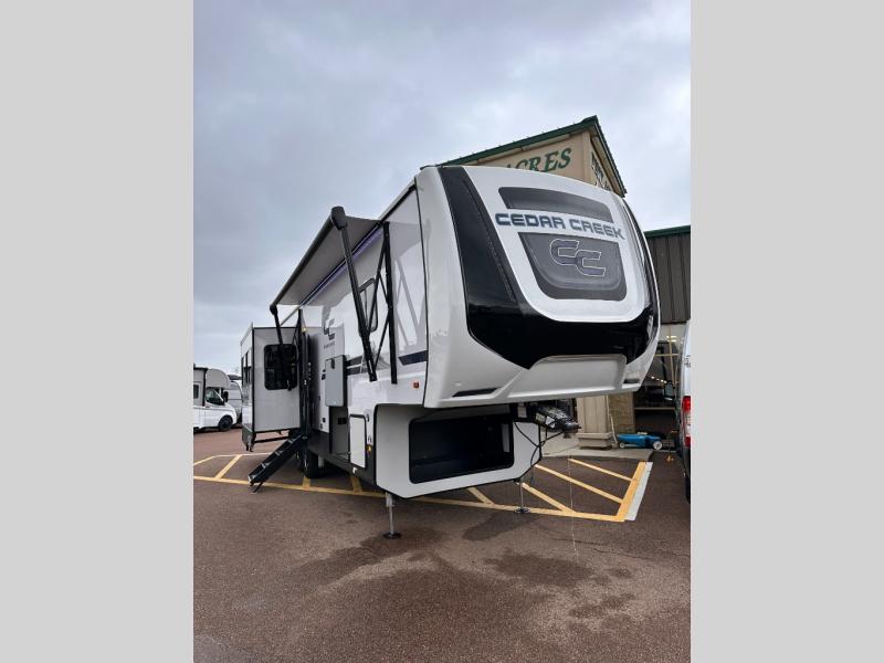 With any Cedar Creek Experience fifth wheel by Forest River, you will bet met with luxury features both inside and out! The True Gelcoat exterior is the best of the best in exteriors and the 3M bonded sidewalls will hold up over years of use. Each model includes Lippert 7,000 lb. axles with ABS brakes, Road Warrior suspension, plus TST tire pressure monitoring system to make towing that much easier. You will also find a 200 watt solar panel outside, along with a heated front storage compartment, a Nautilus P4 multi-function panel with an outside shower, black tank flush, and 12V battery disconnect, plus many more exterior conveniences. The interior will have you feeling like you haven't left home with vinyl floor coverings, Ashley furniture power theater seating, a cozy fireplace, a large bath counter, and the list of comforts goes on! Each model is also pre-wired for satellite to the roof, and you're sure to never go bored with a Smart TV in the living room and an added bedroom TV!