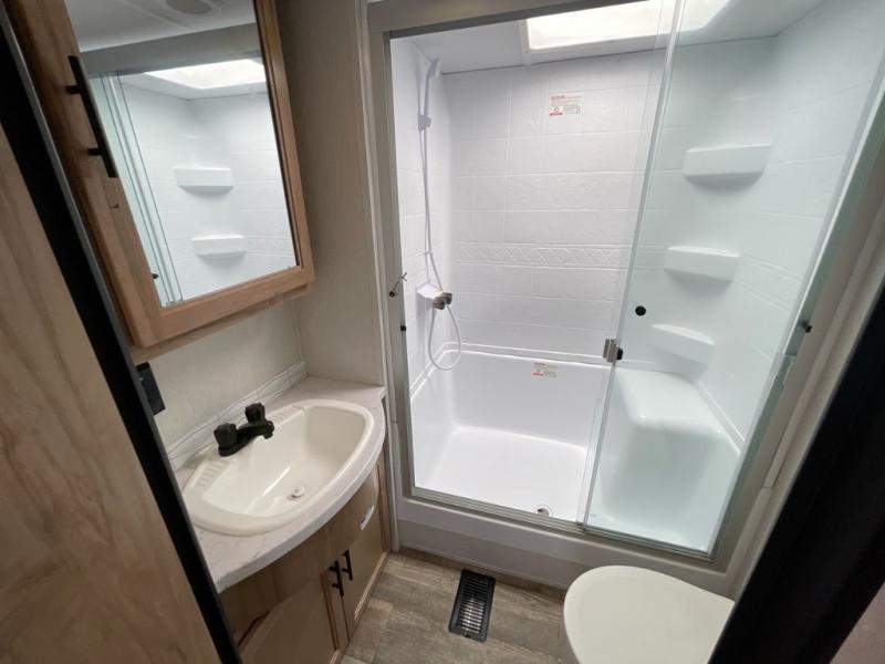 If the open road is calling your name, then answer it with one of these Forest River Cherokee travel trailers or toy haulers! A seamless roofing membrane with heat reflectivity covers these units and an armored underbelly tank enclosure protects it from road debris. The Power Gear frame technology holds them together and also comes with a space saver rail design. An outside shower with hot and cold water helps to keep the dirt outside where it belongs. With the Campfire package, you will get a beautiful entertainment center to watch your favorite movies, a sink cover for more prepping space, and a 6 gallon DSI gas/electric water heater for hot showers each morning. The Cherokee Total Control app and remote control system allows you to control your unit at the touch of a finger. A few other features you will appreciate include a super kitchen, USB charging station, and light filtering sheer shading premium blackout zebra shades for added privacy. Come find your favorite model today!