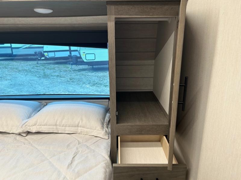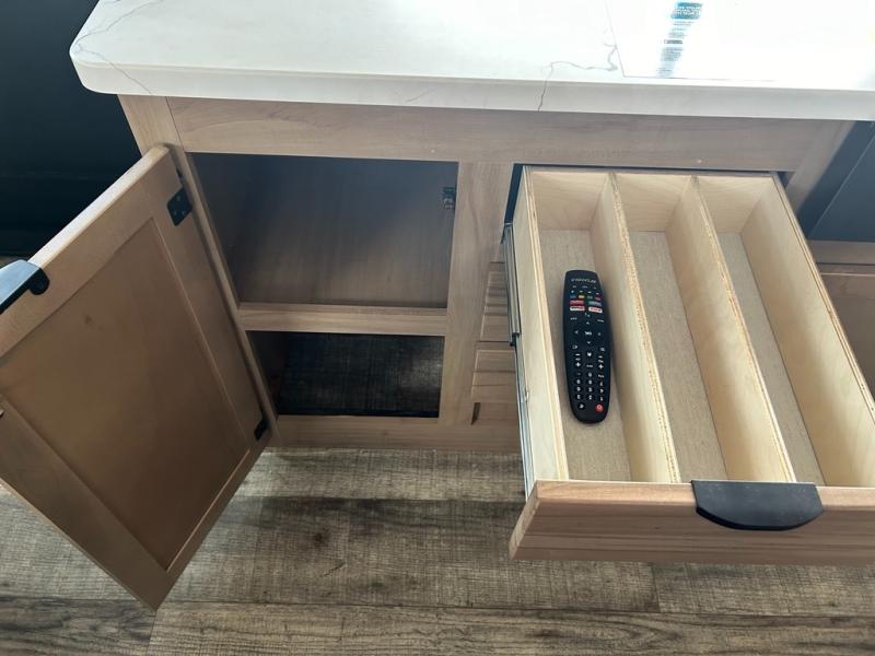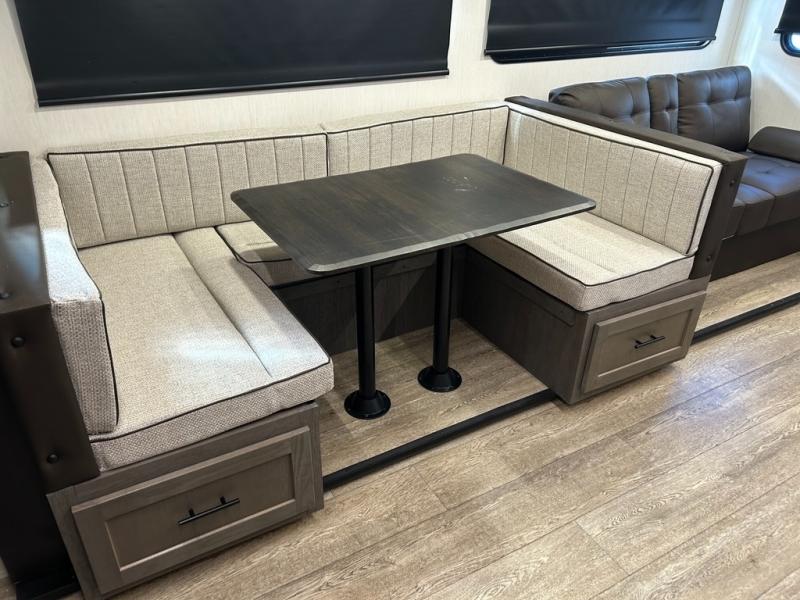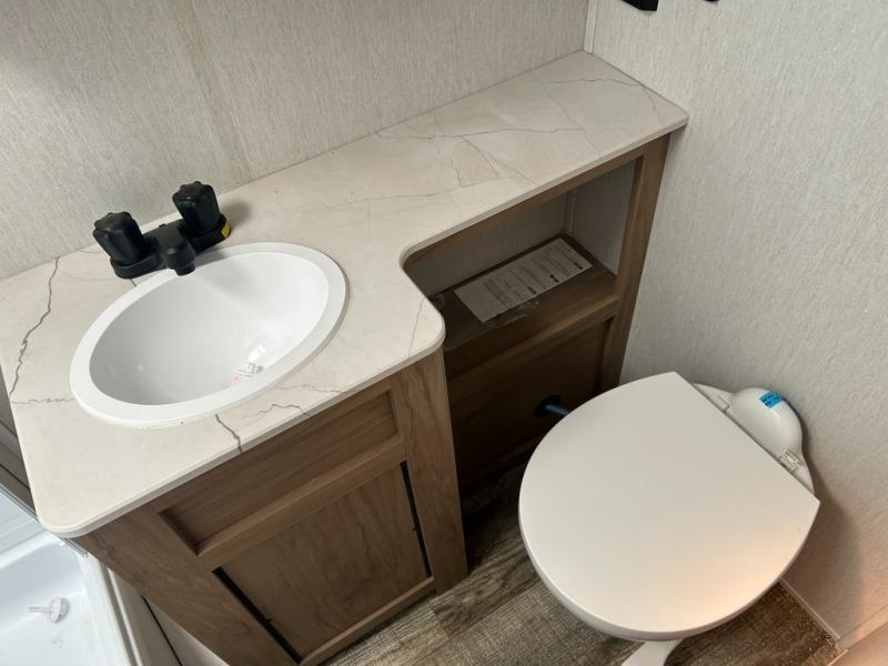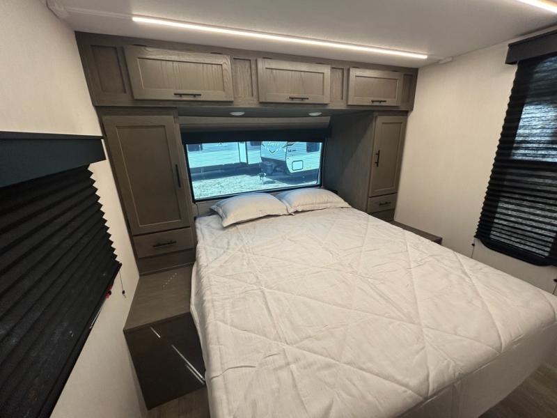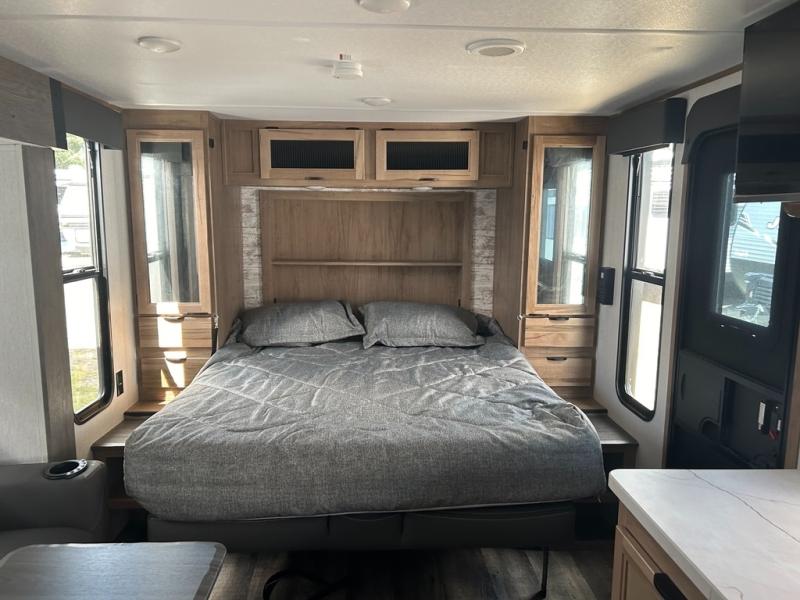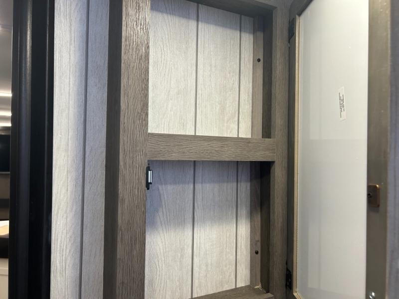 With any Alpha Wolf Touring Edition travel trailer by Forest River you will enjoy at-home comforts at every turn. There is an armored underbelly, upgraded laminated exterior walls with block foam insulation, plus a PVC roof membrane with heat reflectivity so you can camp year around. You will love the blackout kitchen appliance package included within the Limited Package, along with an on-demand tankless water heater, slam latch storage doors with "Safety Stay" magnets, plus On The Go rear ladder prep. The features continue on in the Convenience Package with Leash Latch pet safety technology, an outside shower with hot and cold water, seamless countertops throughout, and tire pressure safety sensors! The Juice Pack with a 100W solar panel, battery disconnect and 30 amp solar charge will provide off-grid capabilities, and the home security/safety camera system prep means you can add this option to help keep your items and loved ones secure.