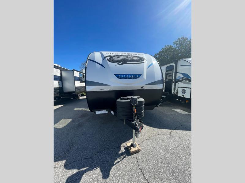 With any Cherokee Alpha Wolf travel trailer by Forest River you'll enjoy outstanding amenities, quality construction, and an affordable price. Each model features a "ToughBend" rigid skirt metal design, 5/8" tongue and groove plywood floor decking, and a "SuperTruss" roof structure that will hold up through years of camping memories. There is a "blackout" kitchen appliance package indoors, along with an LED interior lighting package, a 15,000 BTU quick cool central air conditioning, and many more comforts. These travel trailers include a utility center convenience light so you can easily check tank levels, and the outdoor TV prep means you can bring along your television for the big game. The Limited Package, Weather Guard Package, and Convenience Package include additional features found on select models, and there available options that can be added to further customize your Cherokee Alpha Wolf!