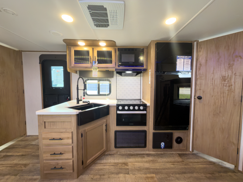 This 2024 Forest River Cherokee Alpha Wolf 23DBH-L is a well-rounded bunkhouse trailer designed for Michigan families and road warriors. With dual-entry, outdoor kitchen, and roomy U-dinette, it’s ready for everything from weekend trips to full-season escapes at our Dewitt and Sterling Heights locations.
