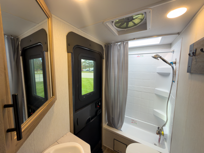 Overview: A solid family-friendly trailer combining bunkhouse convenience, dual access, and premium Alpha Wolf construction—fully equipped for Michigan travel.