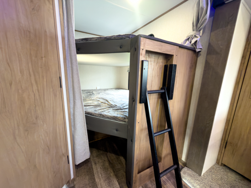 29' bunkhouse trailer with dual entry, 81 gal fresh tank & outdoor kitchen—ideal for Michigan families and weekend adventures.