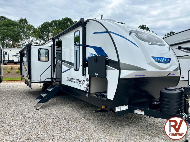 With any Cherokee Alpha Wolf travel trailer by Forest River you'll enjoy outstanding amenities, quality construction, and an affordable price. Each model features a "ToughBend" rigid skirt metal design, 5/8" tongue and groove plywood floor decking, and a "SuperTruss" roof structure that will hold up through years of camping memories. There is a "blackout" kitchen appliance package indoors, along with an LED interior lighting package, a 15,000 BTU quick cool central air conditioning, and many more comforts. These travel trailers include a utility center convenience light so you can easily check tank levels, and the outdoor TV prep means you can bring along your television for the big game. The Limited Package, Weather Guard Package, and Convenience Package include additional features found on select models, and there available options that can be added to further customize your Cherokee Alpha Wolf!