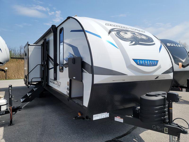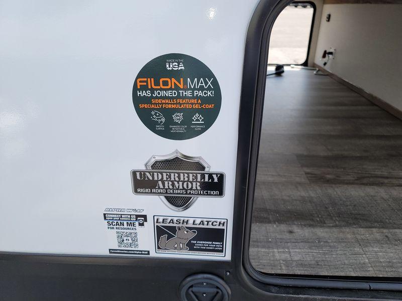 With any Cherokee Alpha Wolf travel trailer by Forest River you'll enjoy outstanding amenities, quality construction, and an affordable price. Each model features a "ToughBend" rigid skirt metal design, 5/8" tongue and groove plywood floor decking, and a "SuperTruss" roof structure that will hold up through years of camping memories. There is a "blackout" kitchen appliance package indoors, along with an LED interior lighting package, a 15,000 BTU quick cool central air conditioning, and many more comforts. These travel trailers include a utility center convenience light so you can easily check tank levels, and the outdoor TV prep means you can bring along your television for the big game. The Limited Package, Weather Guard Package, and Convenience Package include additional features found on select models, and there available options that can be added to further customize your Cherokee Alpha Wolf!