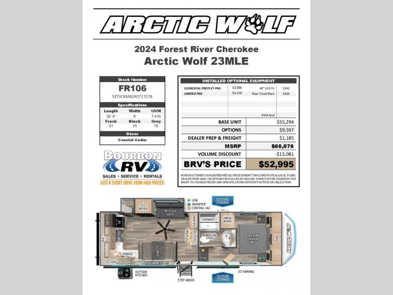 - Includes Forest River's "Flawless Fourteen" design and equipment features that make the Arctic Wolf 23MLE efficient, comfortable, and convenient.