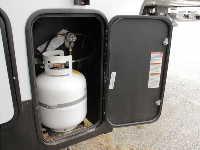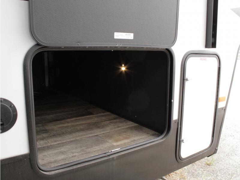 You'll have the very best time tackling outdoor adventures with the Forest River Cherokee Arctic Wolf fifth wheel! Each model has been constructed with a “ToughBend” rigid skirt metal design, Leash Latch pet safety technology, an outside shower with hot/cold water, a 1x engineered wood “SuperTruss” roof structure with 3/8" decking, and aluminum rims. The interior offers you a dual-zone Bluetooth stereo optimized for USB flash drives, iPods, and other MP3 players, and you'll find motion-sensor lighting to help you see when it's dark. There is an automatic leveling and stabilization system, as well as a smart monitor panel with smart phone Bluetooth connectivity. These models have been prepped for a second air conditioner, and an optional rear storage travel rack.