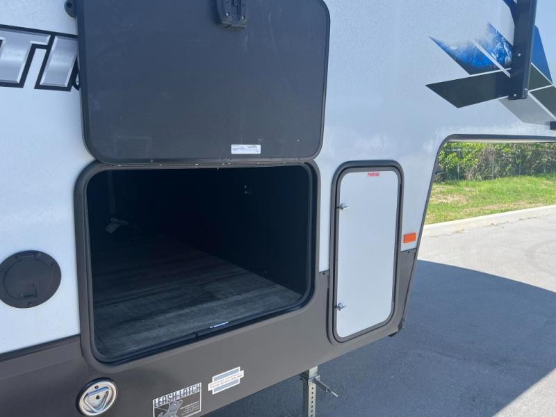 You'll have the very best time tackling outdoor adventures with the Forest River Cherokee Arctic Wolf fifth wheel! Each model has been constructed with a “ToughBend” rigid skirt metal design, Leash Latch pet safety technology, an outside shower with hot/cold water, a 1x engineered wood “SuperTruss” roof structure with 3/8" decking, and aluminum rims. The interior offers you a dual-zone Bluetooth stereo optimized for USB flash drives, iPods, and other MP3 players, and you'll find motion-sensor lighting to help you see when it's dark. There is an automatic leveling and stabilization system, as well as a smart monitor panel with smart phone Bluetooth connectivity. These models have been prepped for a second air conditioner, and an optional rear storage travel rack.