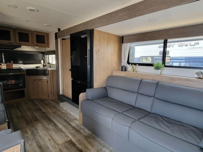Whether it's a journey that will take you to new locations or a tried-and-true getaway to that favorite and memorable destination, the Forest River Cherokee Grey Wolf travel trailers and toy haulers are going to make the trip worth it every single time! You can travel in confidence with the premium wheel package, seamless roofing membrane with heat reflectivity, Power Gear frame technology with space-saver rail design, and Cherokee back-up camera system. The Cherokee Grey Wolf's interior is highly attractive with its stainless steel kitchen suite package and premium bedding ensemble and comforter, and 8" ceiling-mounted subwoofer with accent lighting. You will also find a black waste tank flush-out kit, an outside shower with hot and cold water, an armored underbelly tank enclosure, and an RV grill quick connect.