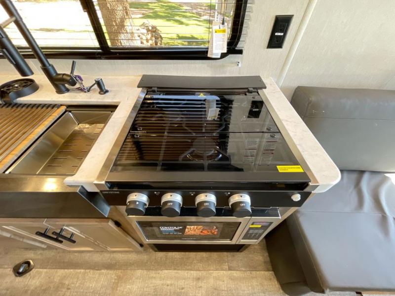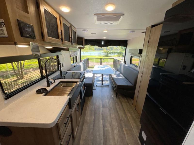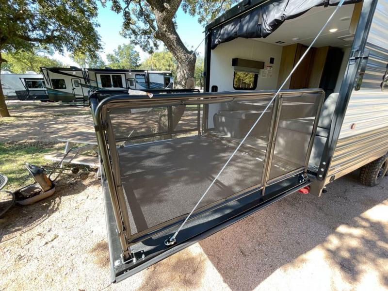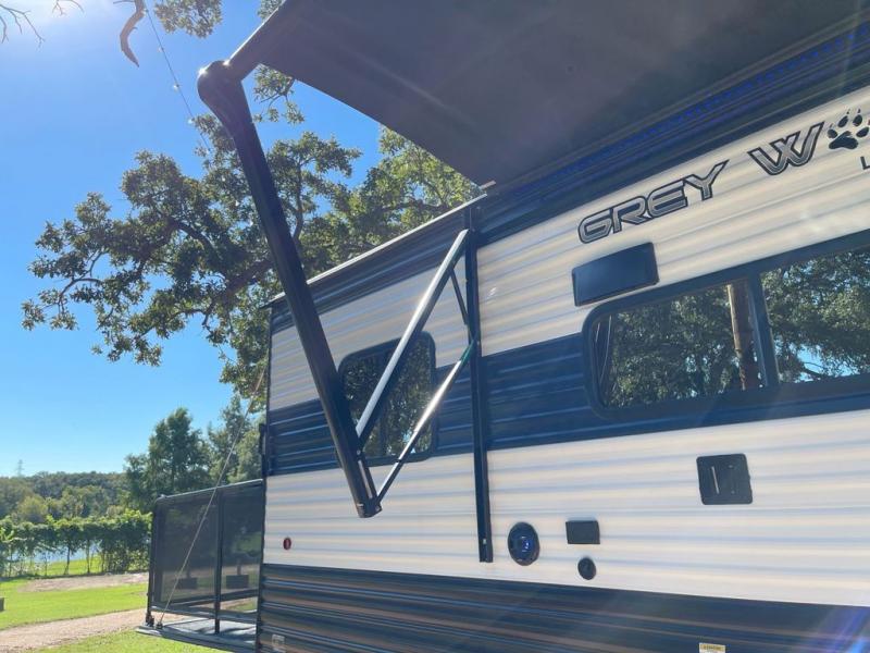 Whether it's a journey that will take you to new locations or a tried-and-true getaway to that favorite and memorable destination, the Forest River Cherokee Grey Wolf travel trailers and toy haulers are going to make the trip worth it every single time! You can travel in confidence with the premium wheel package, seamless roofing membrane with heat reflectivity, Power Gear frame technology with space-saver rail design, and Cherokee back-up camera system. The Cherokee Grey Wolf's interior is highly attractive with its stainless steel kitchen suite package, premium bedding ensemble and comforter, and 8" ceiling-mounted subwoofer with accent lighting. You will also find a black waste tank flush-out kit, an outside shower with hot and cold water, an armored underbelly tank enclosure, a power tongue jack, and an RV grill quick connect.