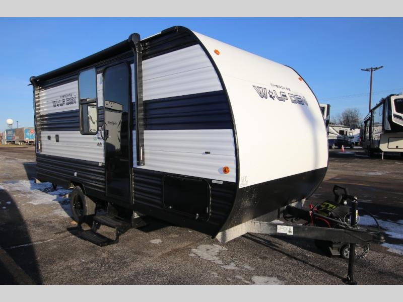 The Cherokee Wolf Den travel trailers by Forest River are lightweight for easy towing, while still including the camping essentials you're looking for! There are a variety of floorplans to choose from, including bunkhouse models, couple's units, and even all-electric floorplans! You'll find a tub/shower in each travel trailer, a comfortable queen bed, seating spaces to relax on, and kitchen amenities that will make your space feel more like home. There are storage spaces inside for your belongings plus outdoor storage for fishing gear, camp chairs, tools, and more! Start a new adventure today in a Cherokee Wolf Den travel trailer today!