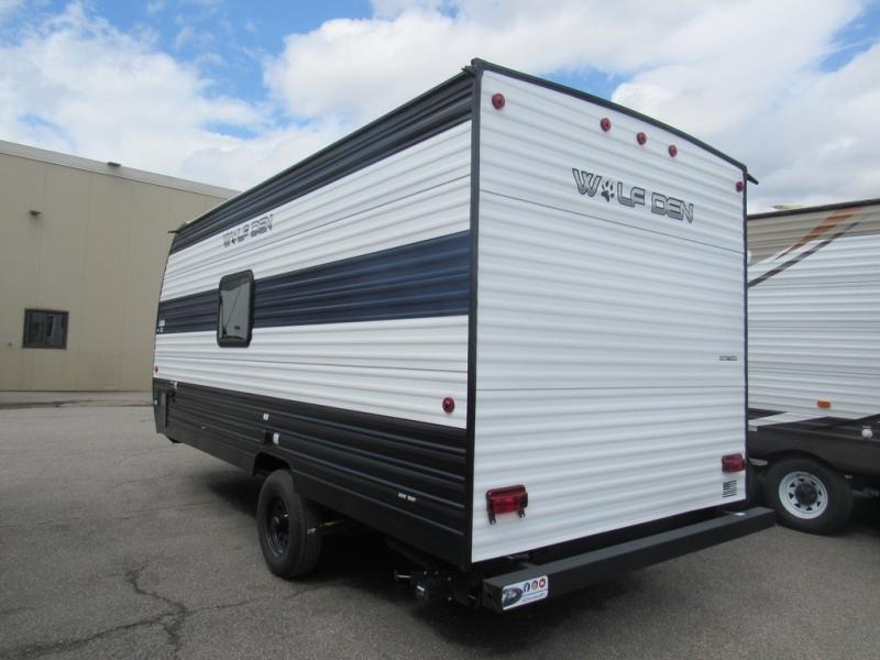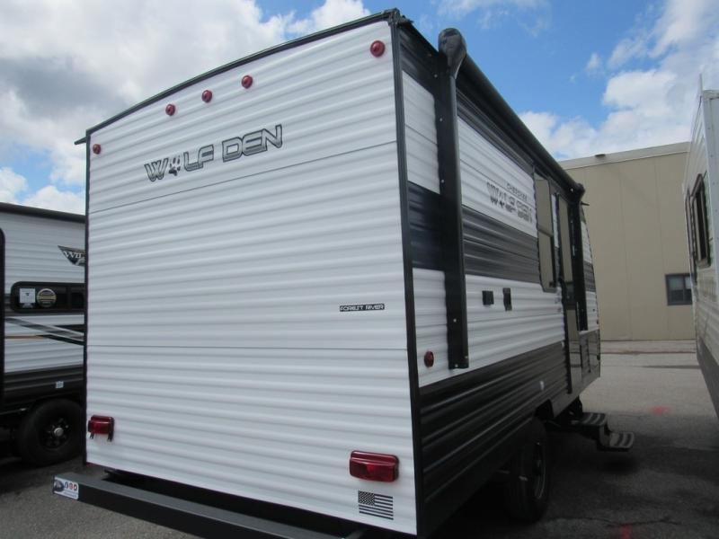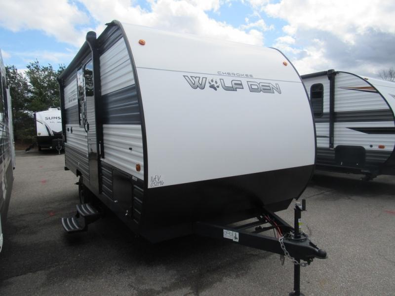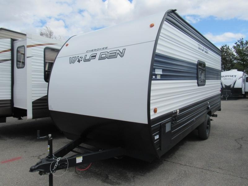 The Cherokee Wolf Den travel trailers by Forest River are lightweight for easy towing, while still including the camping essentials you're looking for! There are a variety of floorplans to choose from, including bunkhouse models, couple's units, and even all-electric floorplans! You'll find a tub/shower in each travel trailer, a comfortable queen bed, seating spaces to relax on, and kitchen amenities that will make your space feel more like home. There are storage spaces inside for your belongings plus outdoor storage for fishing gear, camp chairs, tools, and more! Start a new adventure today in a Cherokee Wolf Den travel trailer today!