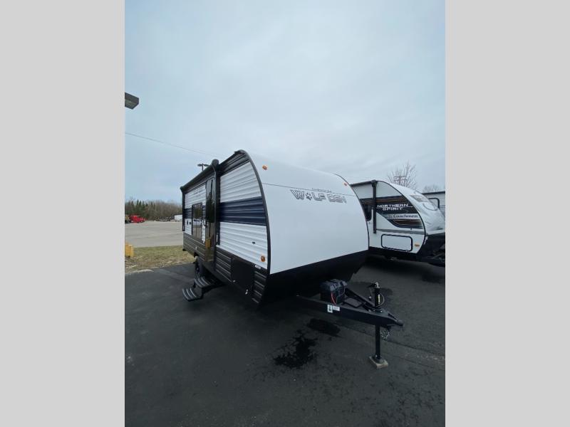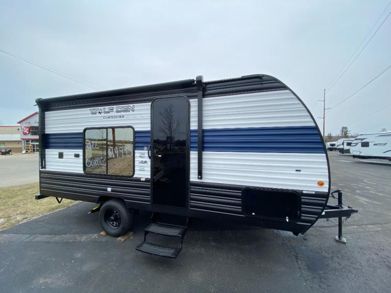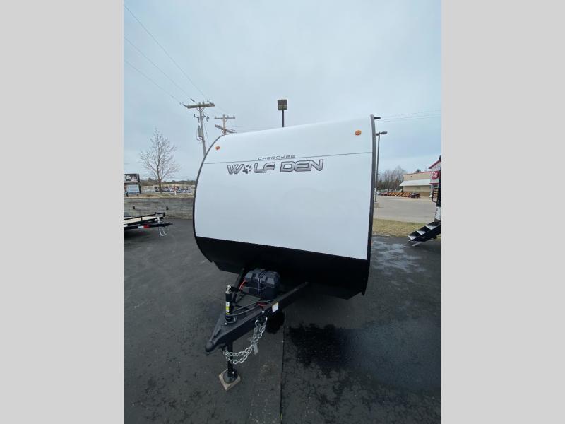 The Cherokee Wolf Den travel trailers by Forest River are lightweight for easy towing, while still including the camping essentials you're looking for! There are a variety of floorplans to choose from, including bunkhouse models, couple's units, and even all-electric floorplans! You'll find a tub/shower in each travel trailer, a comfortable queen bed, seating spaces to relax on, and kitchen amenities that will make your space feel more like home. There are storage spaces inside for your belongings plus outdoor storage for fishing gear, camp chairs, tools, and more! Start a new adventure today in a Cherokee Wolf Den travel trailer today!