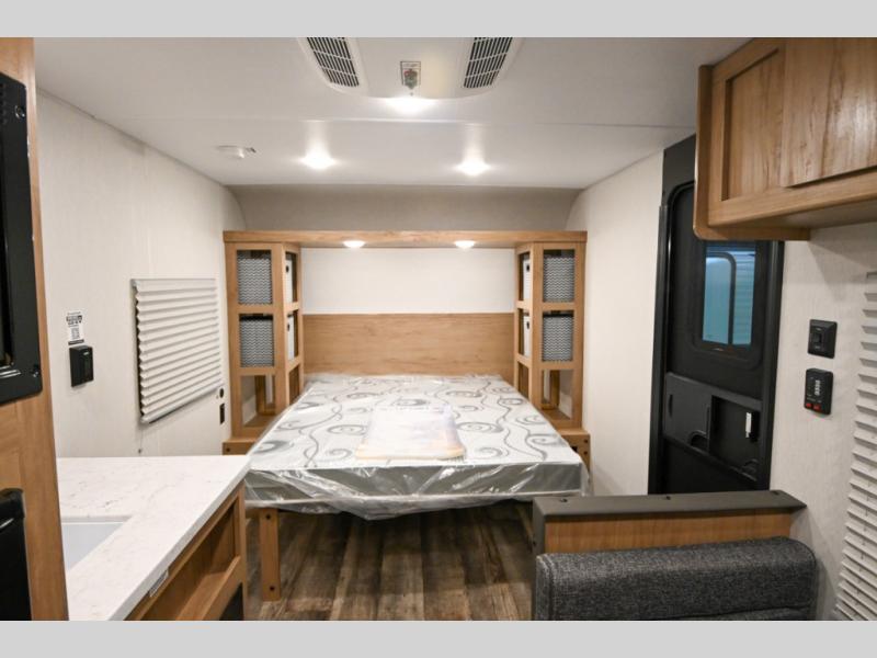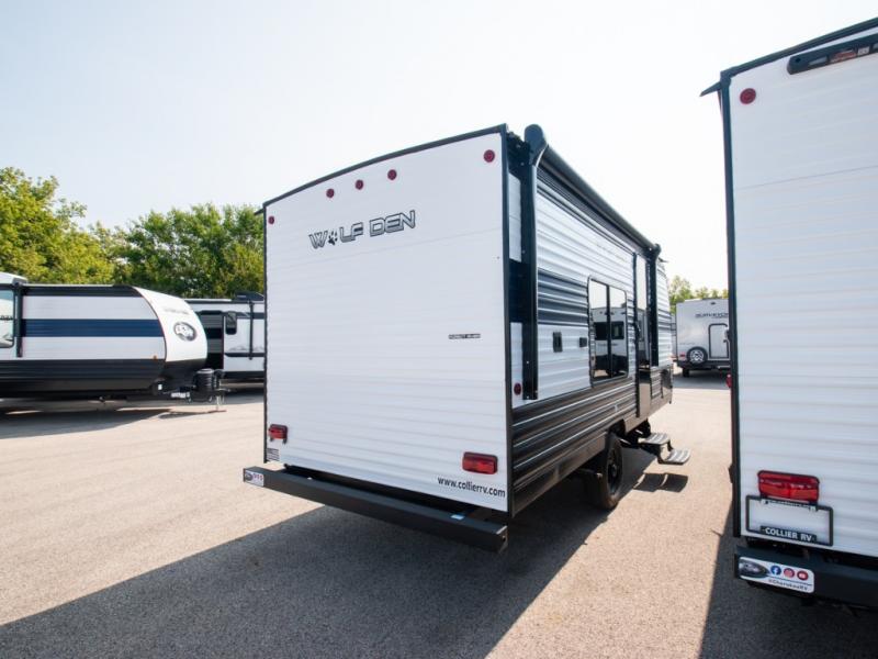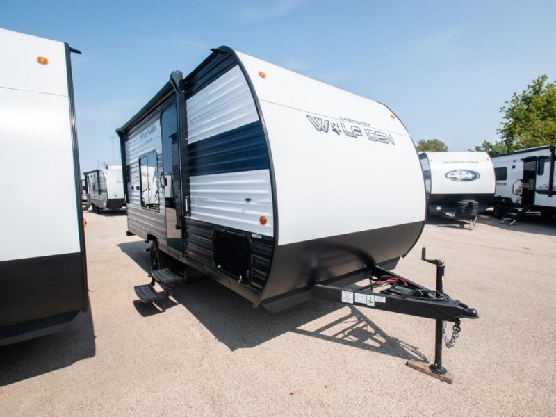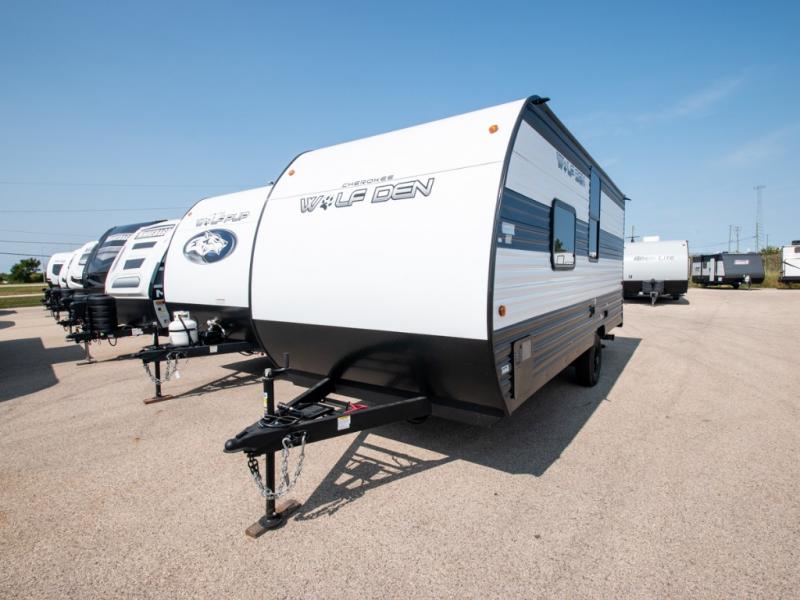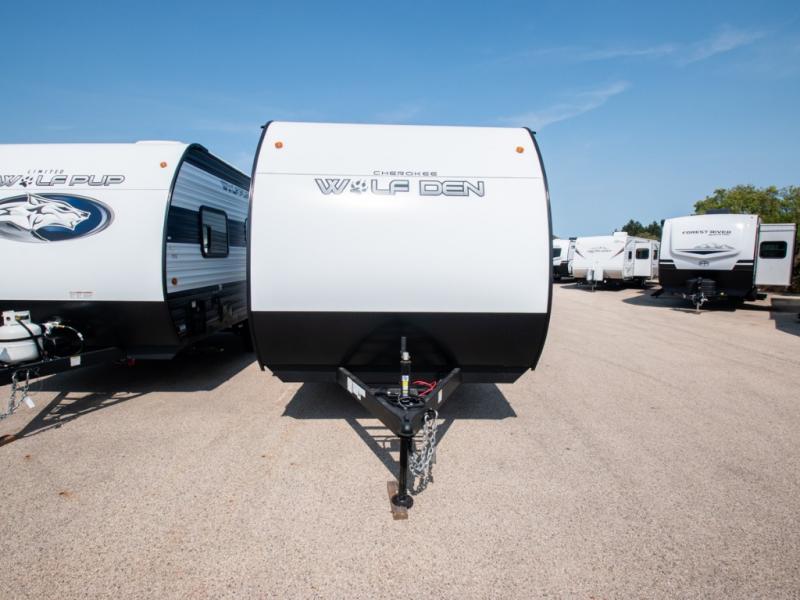 The Cherokee Wolf Den travel trailers by Forest River are lightweight for easy towing, while still including the camping essentials you're looking for! There are a variety of floorplans to choose from, including bunkhouse models, couple's units, and even all-electric floorplans! You'll find a tub/shower in each travel trailer, a comfortable queen bed, seating spaces to relax on, and kitchen amenities that will make your space feel more like home. There are storage spaces inside for your belongings plus outdoor storage for fishing gear, camp chairs, tools, and more! Start a new adventure today in a Cherokee Wolf Den travel trailer today!