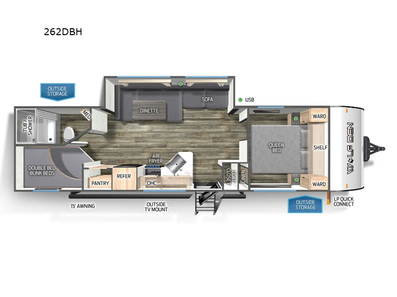 Forest River Cherokee Wolf Den travel trailer 262DBH highlights: