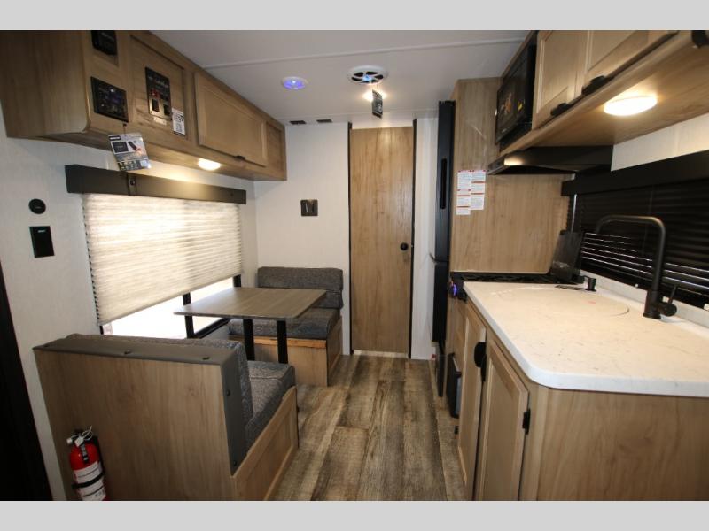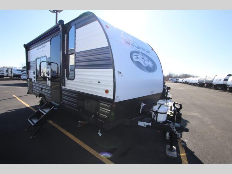 Each one of these Forest River Cherokee Wolf Pup travel trailers are lightweight and easy to tow! They are fully self contained with ample tank capacities, an abundance of storage space, and filled with at home amenities. The aerodynamic smooth radius front profile, the Power Gear frame technology, and the space saver rail design make them easier to maneuver. You will also appreciate the seamless roofing membrane with heat reflectivity to keep the sun from making your unit a hot box. The tongue and groove plywood flooring will hold up for years of fun and the USB charging stations help to keep your electronics at 100% while you're away. Come find the best model for you today!