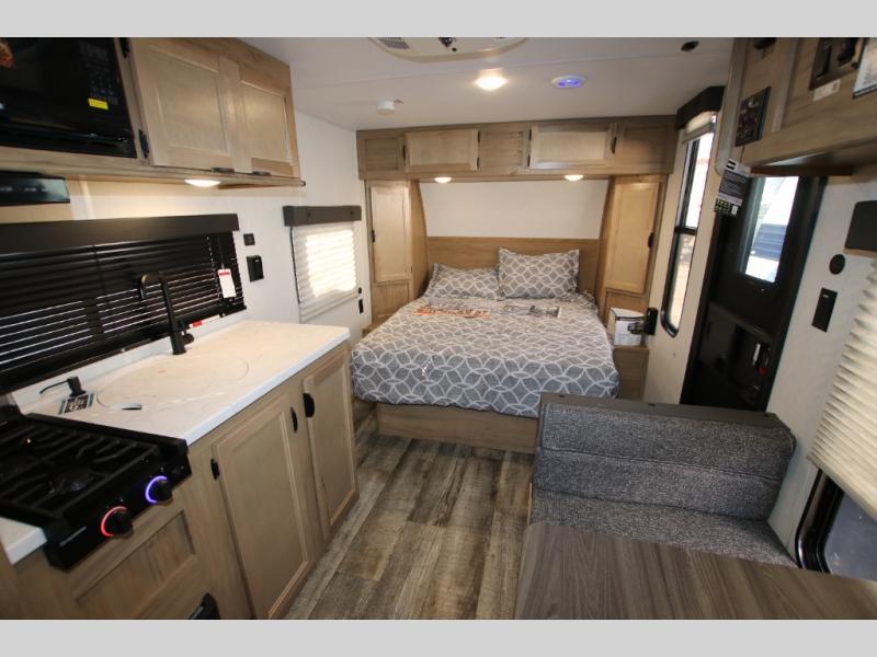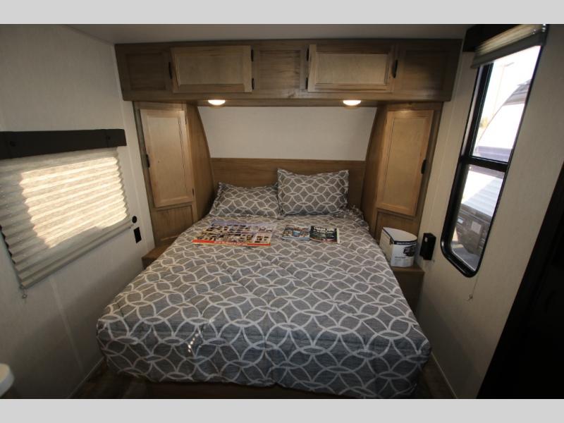 You will experience versatile living in this travel trailer with the Cherokee Sleep System! It lets you easily convert the front queen bed into a comfortable sofa to sit on during the day. Freshen up each morning in the full rear bathroom with the tub/shower and large sink with cabinet storage below it and mirror above it. Fill your bellies with the perishables stored in the 11 cu. ft. Cannon high efficiency refrigerator and cook them on the high output cooktop then enjoy them at the booth dinette. You could even prepare a meal while breathing in some fresh air at the outside mini kitchen while staying protected by the 12' power awning. Easily store all of your outdoor gear in the outside storage area too!