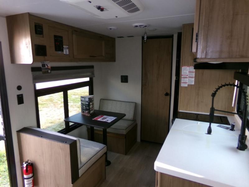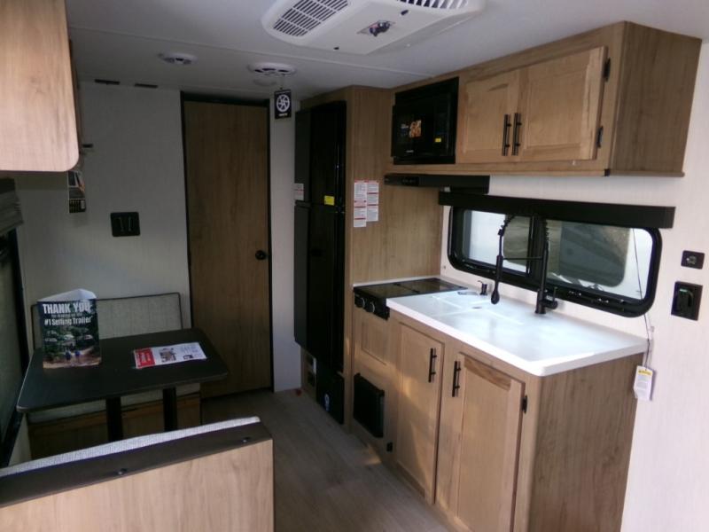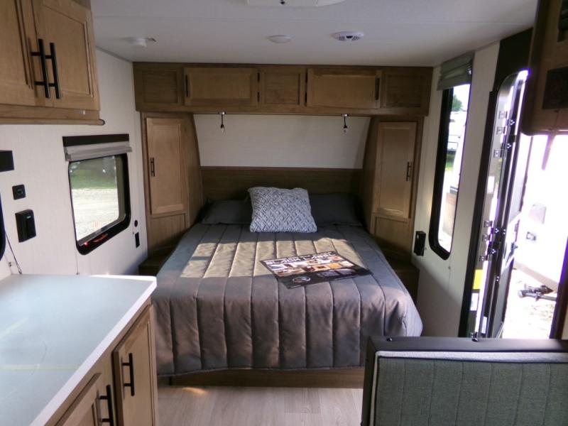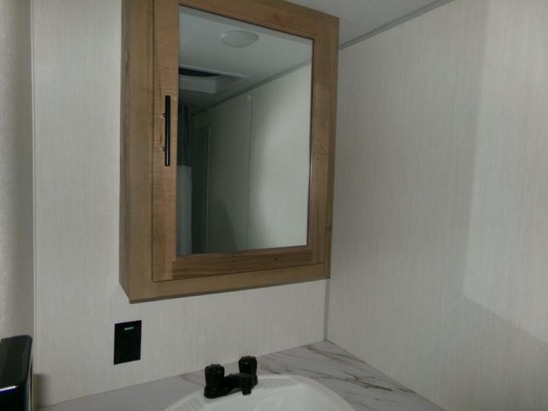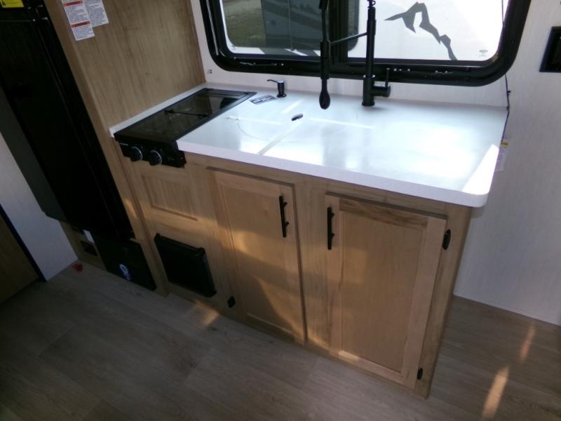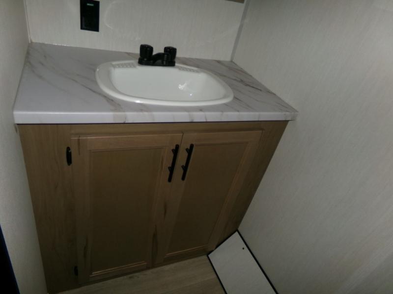 You will love camping in this travel trailer with your own queen bed up front! Freshen up each morning in the full rear bathroom with the tub/shower, toilet, and sink. Fill your bellies with the perishables stored in the 11 cu. ft. 12V high efficiency residential refrigerator and cook them on the high output cooktop. You could even prepare a meal while breathing in some fresh air at the outside mini kitchen while staying protected by the 12' power awning. Easily store all of your outdoor gear in the outside storage area too!