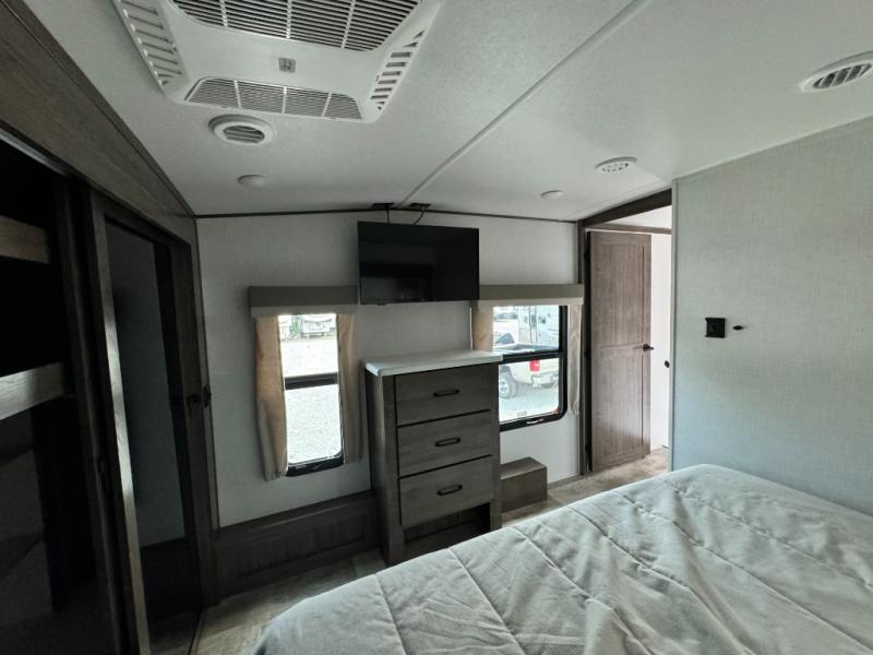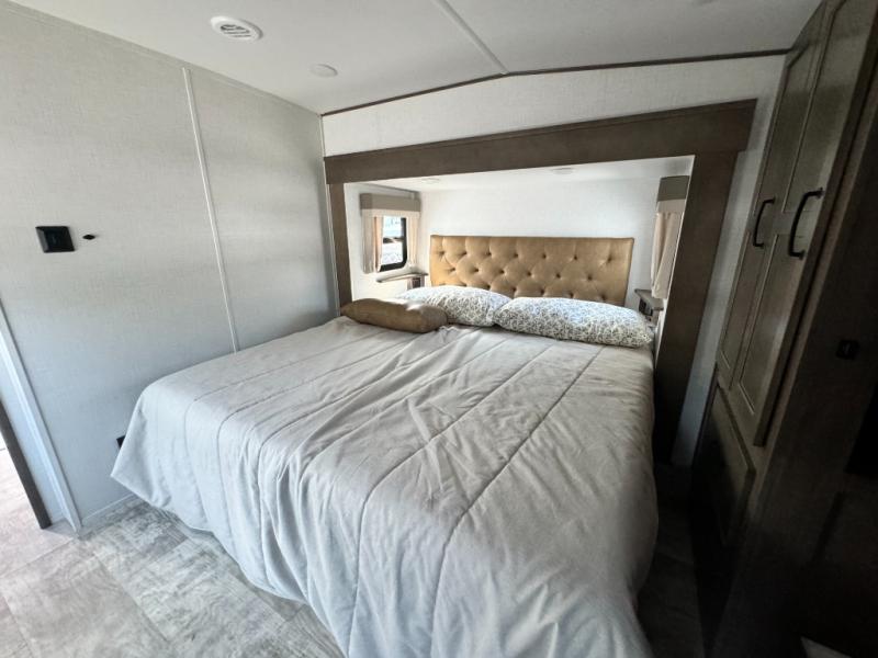 Each one of these Forest River Flagstaff Classic fifth wheels or travel trailers will be your home on wheels! Their quality craftsmanship and attention to detail shines through the surface-coated steel I-beam frame on fifth wheels, the enclosed underbelly, the radius roof with vaulted interior ceilings, and six-sided fully aluminum-framed floor, walls, and roof. Towing your unit will be easy with the torsion axle, Rubber-Ryde suspension, and nitrogen-filled Goodyear Endurance tires. You will even reduce your use of water with the Showermiser water saving system in the bathroom. A few other convenient features you will enjoy include a control panel with WeRV app control, designer headboard and bedding, and an outside hot and cold water port. Come choose your favorite one today!