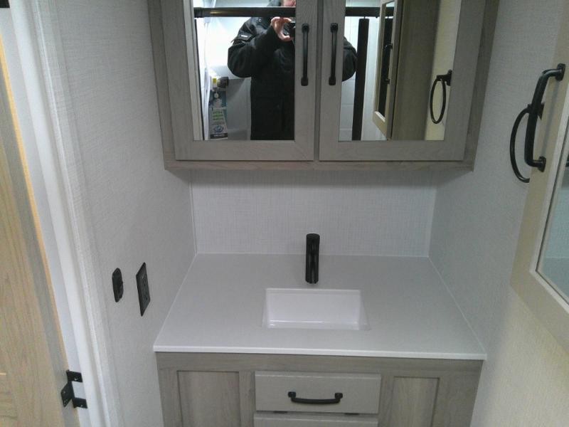 Whether you enjoy staying at the campground for a weekend or longer and/or you enjoy off-grid camping, this 20'2" long trailer gives you lots of interior space and versatility to enjoy each and every trip. From the Murphy bed/sofa combo up front offering sleeping space and seating depending on which you prefer at the time, to the full rear bathroom which also offers linen storage, you will have everything you need. And the kitchen cooktop, microwave and 12V refrigerator allow you to make meals and store leftovers. Two can dine at the booth dinette or you can eat outdoors under the 14' power awning.