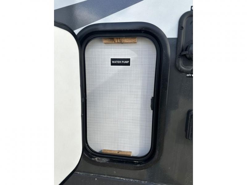 This Flagstaff Micro Lite travel trailer is going to make your camping dreams come true! With a queen bed slide and a large wardrobe in the private bedroom, you will have all that you need for sleeping and storing your belongings. Plus, the second exterior entry door leads right into the bedroom so that you can escape for an early morning run without running through the entire trailer to get outside. The front kitchen is open and accommodating with its helpful tools, and the 67" theater seat is right next to the 12V refrigerator on the slide out. Right next to the front entry door is a coat closet/pantry so you can keep your jackets readily available, and there is also a linen closet in the walk-through bath so that you can keep your towels ready for your shower.