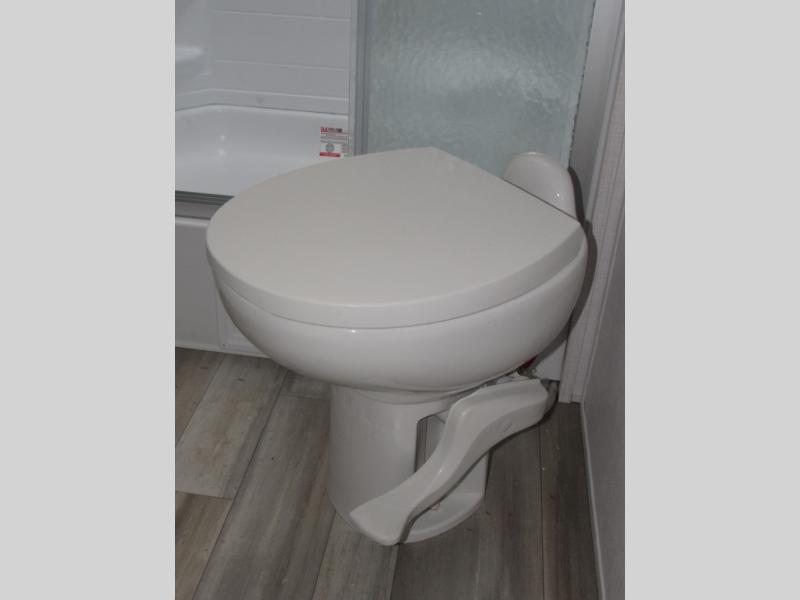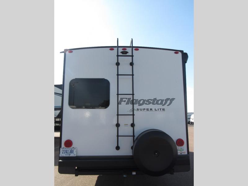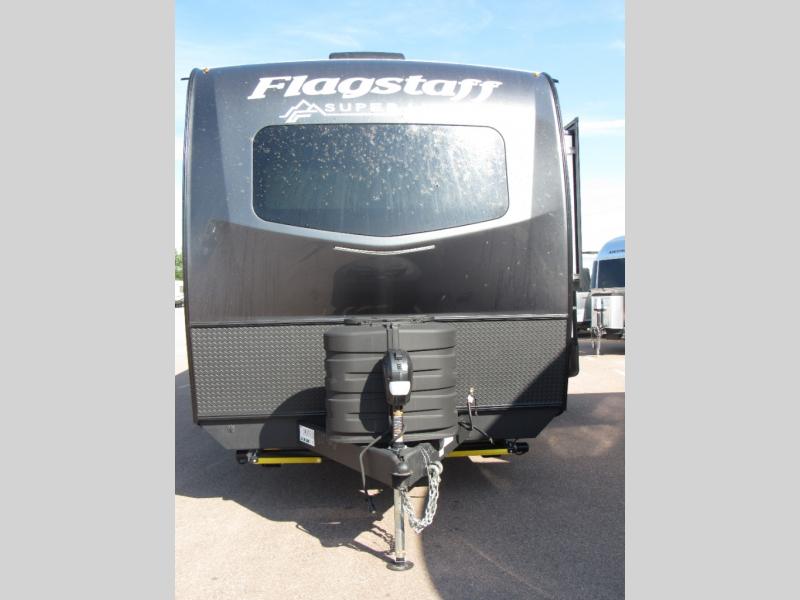 With any Flagstaff Super Lite travel trailer by Forest River the towing features include the TST tire pressure monitor system with a monitor providing safety on the road, Easy Lube axles and Nev-R adjust brakes, a power tongue jack for easy setup, and rear observation camera prep. Each is built with 6 sided aluminum framed side walls, end wall, front, floor and a roof, a plywood tongue and groove subfloor, electronically controlled heated holding tanks and an enclosed underbelly allowing you to travel during any season. The interior a multi-zone stereo with DVD, CD, AM/FM and Bluetooth control, a Showermiser water saving system, designer bedding and so much more!