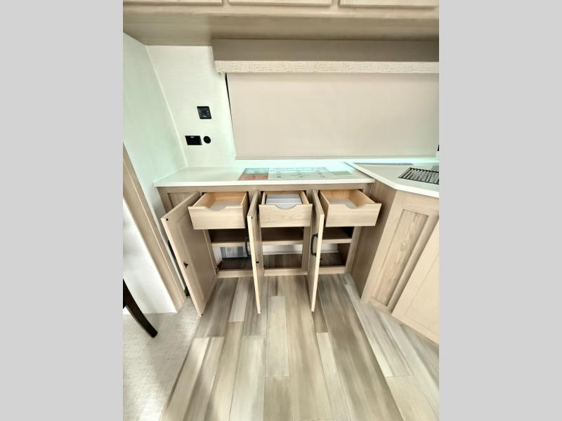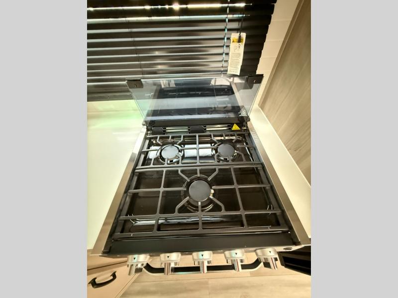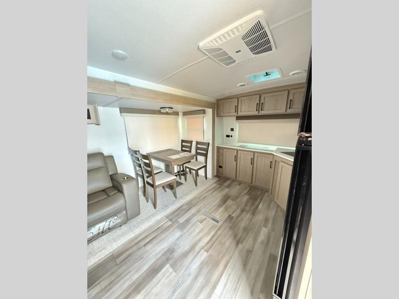 Featuring a front kitchen with premium appliances, a spacious living area with theater seating, and a private bedroom, it’s perfect for couples or families seeking comfort on the road!