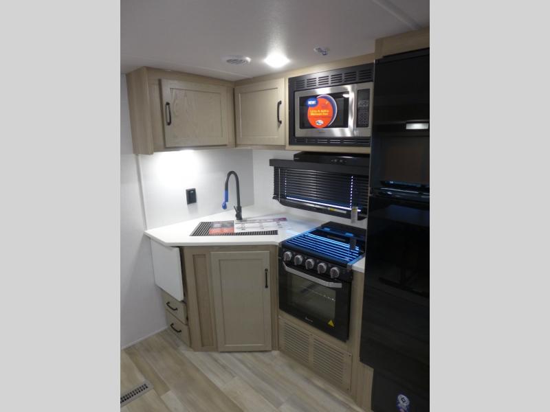 With any Flagstaff Super Lite travel trailer by Forest River the towing features include the TST tire pressure monitor system with a monitor providing safety on the road, Easy Lube axles and Nev-R adjust brakes, a power tongue jack for easy setup, and rear observation camera prep. Each is built with 6 sided aluminum framed side walls, end wall, front, floor and a roof, a plywood tongue and groove subfloor, electronically controlled heated holding tanks and an enclosed underbelly allowing you to travel during any season. The interior offers a Water-Pur filtration system, a multi-zone stereo with DVD, CD, AM/FM and Bluetooth control, a Showermiser water saving system, designer bedding and so much more! Choose a lightweight, towable by half-ton pickup truck Flagstaff Super Lite today!