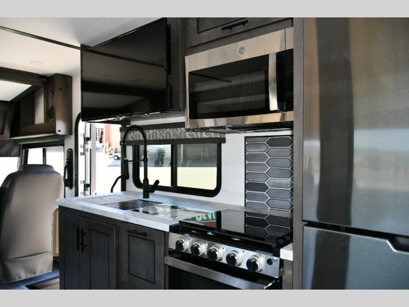 Spacious Living Area – Includes a jackknife sofa, theater seating, and a large LED TV, perfect for relaxing after a day of adventure.