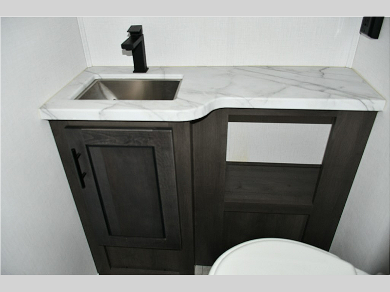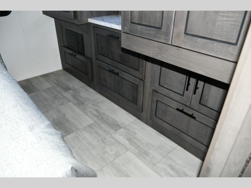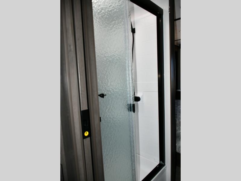 Residential-Style Bathroom – A full bath with a spacious shower, skylight, and vanity storage brings all the comforts of home on the road.