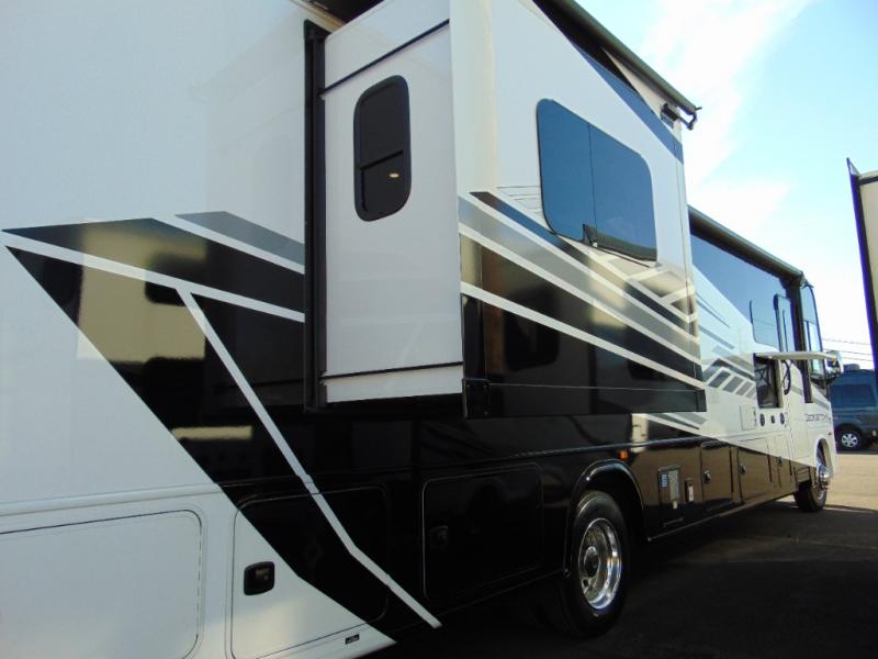 A spacious design and true luxury come together to create these Forest River Georgetown 5 Series Class A gas motorhomes! Their solid surface kitchen countertops, day and night shades throughout, and designer bedspread will have you feeling right at home. The color side and rear cameras help to prevent any dings or bumps while you travel, and the automatic hydraulic leveling jacks will keep your unit leveled where ever you set up. Durable construction consists of a crowned roof, 2" aluminum framed vacuum bonded gel coated sidewalls, plus high density block foam insulation that will allow you to travel in all seasons. You will appreciate the 50 Amp service, two house batteries, and 6,000 watt Yamaha generator to keep you powered up. An outside shower is also included on all models, along with rotocast storage compartments with drains, a power awning, and so much more!