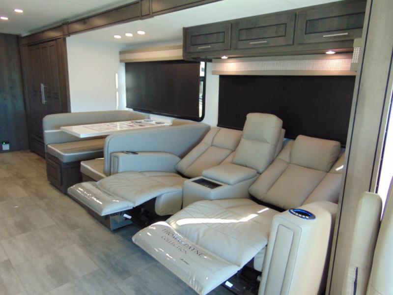 You won't have to search far for comfort in this spacious coach for seven to eight! The little ones will love having bunk beds to sleep on, plus there is a full bath right across the hall for convenience. The master bedroom with a king bed slide out will have you feeling right at home, and the second full bath includes ample counter space to set out your necessities. Everyone can meet in the main living area to relax on the hide-a-bed sofa, or you can choose the optional power theater seats if you don't need more sleeping space. You will surely never get bored with a 40" LED TV in the living room, 32" LED TV in the bedroom, plus a 40" LED TV outdoors with a radio and exterior speakers!