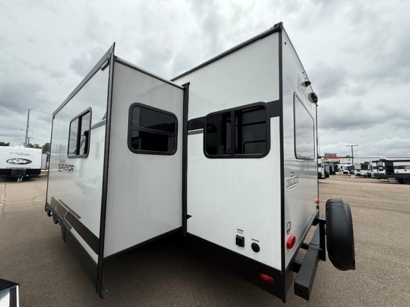 The 2024 Grand Surveyor 253RLS pairs upscale Surveyor finishes with a bright rear-living design that shines under Holiday Special pricing.