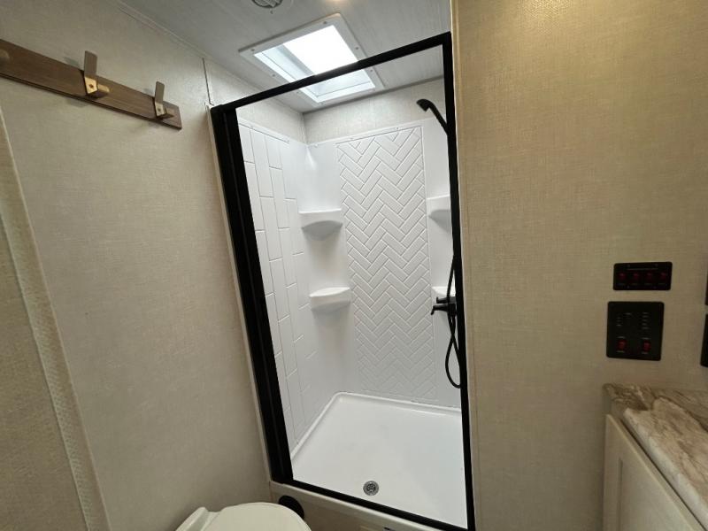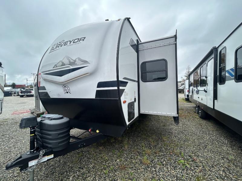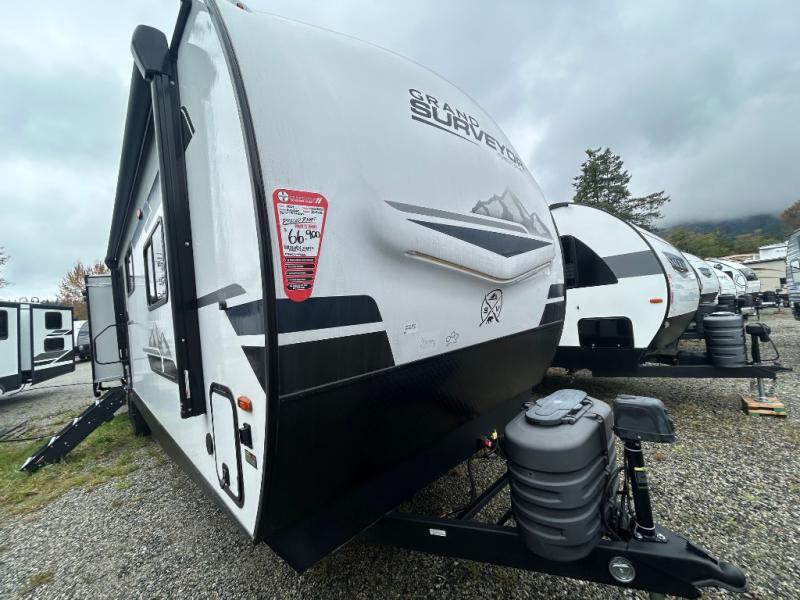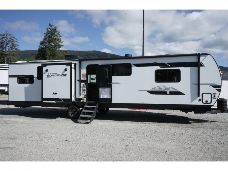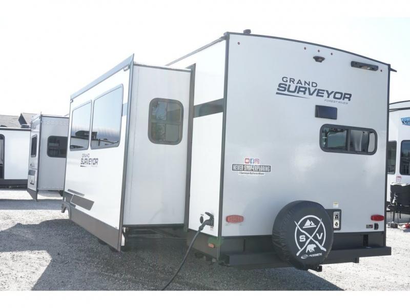 Built for convenience and durability, the Grand Surveyor includes Azdel composite walls, a gel-coated fiberglass front cap with an automotive-style windshield, and friction hinge black glass entry doors. You’ll also find slam latch baggage doors, an adjustable step with night light, and a 2" rear accessory hitch for added versatility.